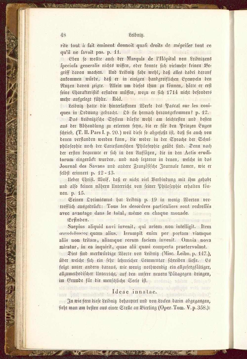 Dies sind merkwürdige Worte von Lcibnitz <Msv. I^eiliu. i». 147.),über welche sich ein sehr lehrreicher Commcntar schreiben ließe. ESfolgt unter andern daraus, wie wenig nothwendig ein allzusorgfältigcr,allzumethodischcr Unterricht, auf den unsere neuern Pädagogen dringen,im Grunde für die menschliche Seele ist.
