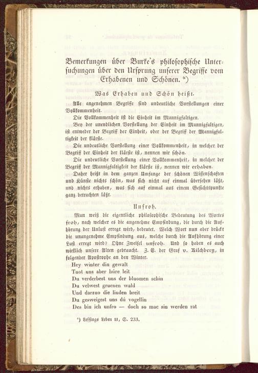 Bemerkungen über Burke's philosophische Unter-suchungen über den Ursprung unserer Begriffe vomErhabenen und Schönen.