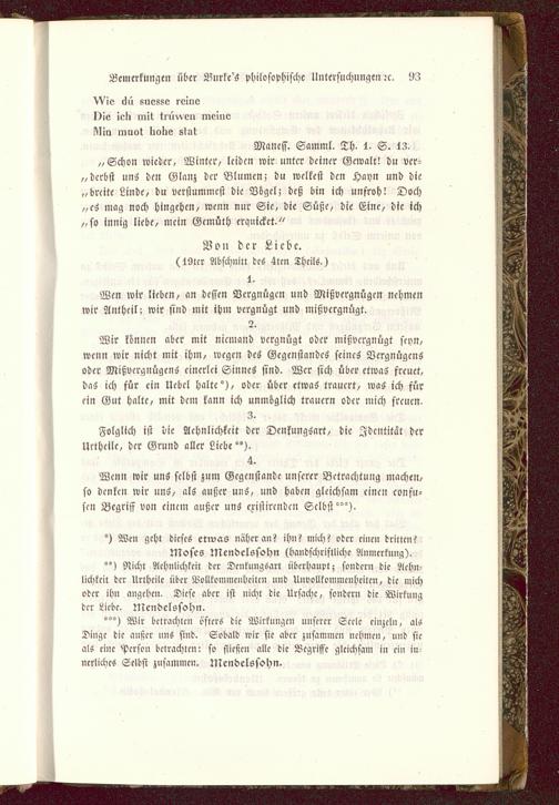 ") Nicht Achnlichkcit der Dcnkungsart überhaupt; sondern die Acl'ii-lichlcit der Urtheile über Vollkommenheiten und Unvollkommcnhciten, die michoder ihn angeben. Diese aber ist nicht die Ursache, sonder» die Wirkungder Liebe. Mendelssohn .