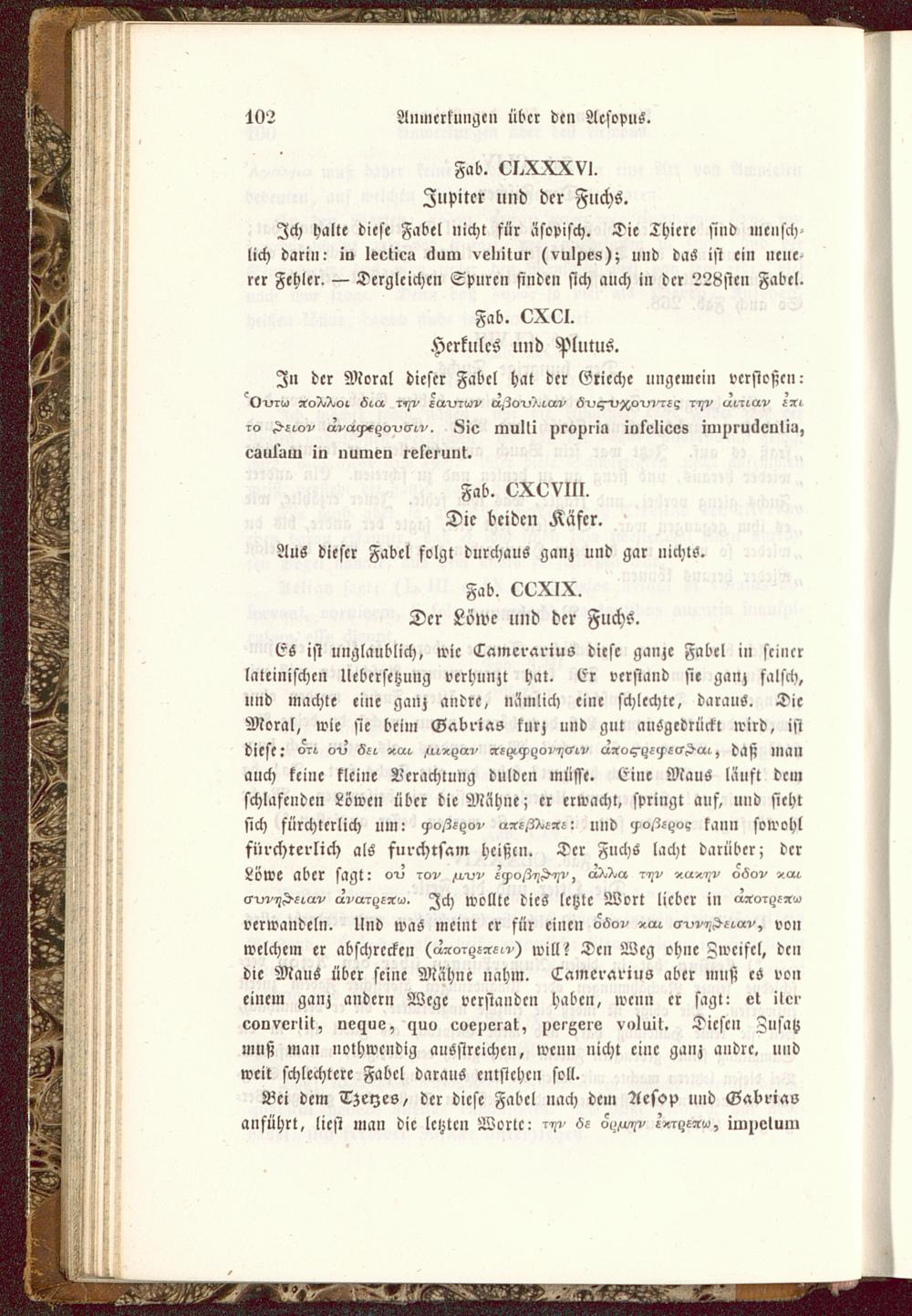 Ich halte diese Fabel nicht für äsopisch. Die Thiere sind menschlich darin: io lecticu 6um veliilur (vulprs); und das ist ein ncncrer Fehler. — Dergleichen Spuren finden sich auch in der 228sten Fabel.