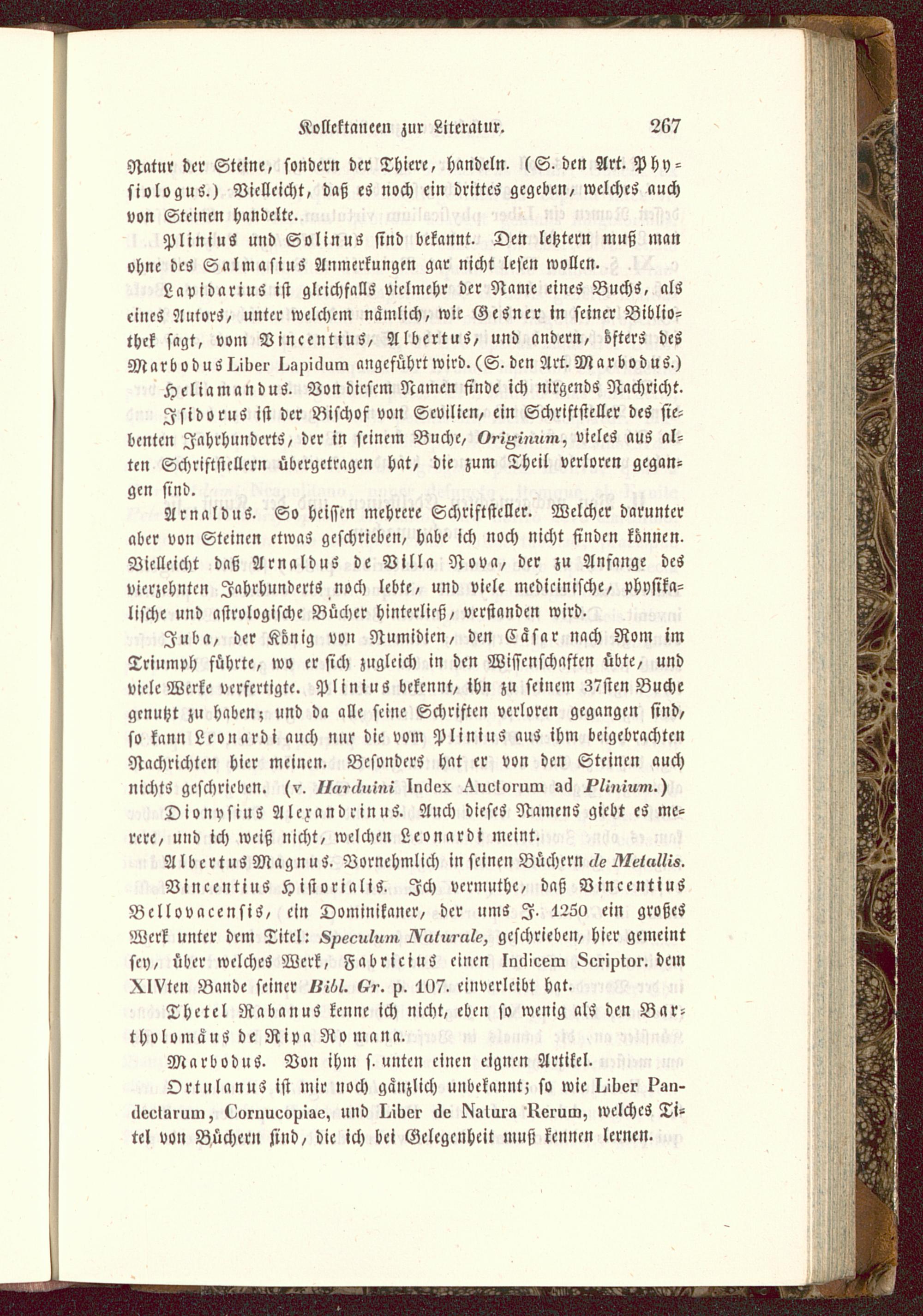 Juba, der König von Numidien, den Cäsar nach Rom imTriumph führte, wo er sich zugleich in den Wissenschaften übte, undviele Werke verfertigte. PliniuS bekennt, ihn zu seinem 37sten Buchegenutzt zu haben; und da alle seine Schriften verloren gegangen sind,so kann Lconardi auch nur die vom PliniuS aus ihm beigebrachtenNachrichten hier meinen. Besonders hat er von den Steinen auchnichts geschrieben, (v. //li^ii-»» Index ^ueloiaiu s6 /V,»«»?».)