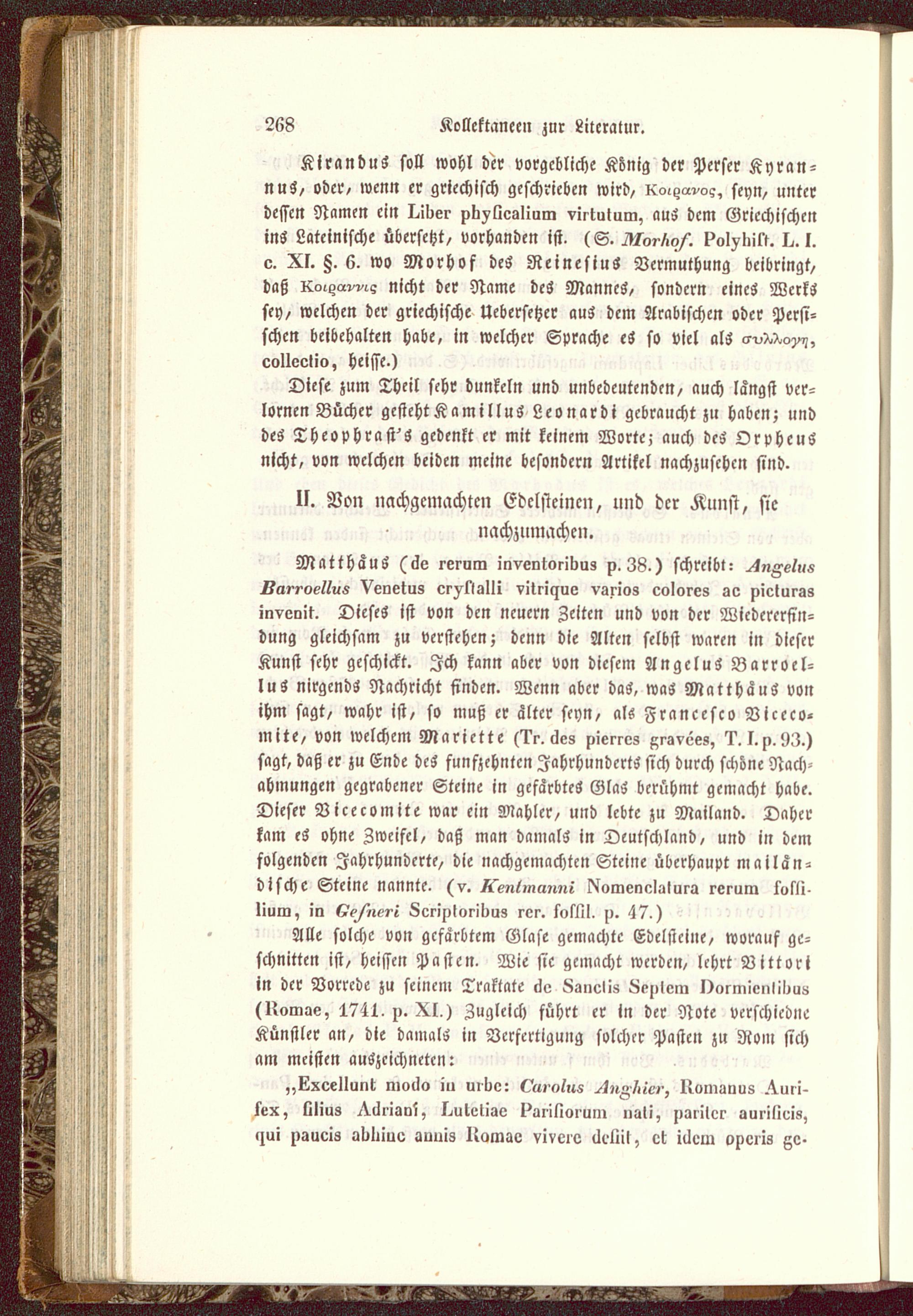 Diese zum Theil sehr dunkeln und unbedeutenden, auch langst Ver-lornen Bücher gcstehtKamilluS Lconardi gebraucht zu haben; unddes Thcophrast^S gedenkt er mit keinem Worte; auch des Orpheusnicht, von welchen beiden meine besondern Artikel nachzusehen sind-