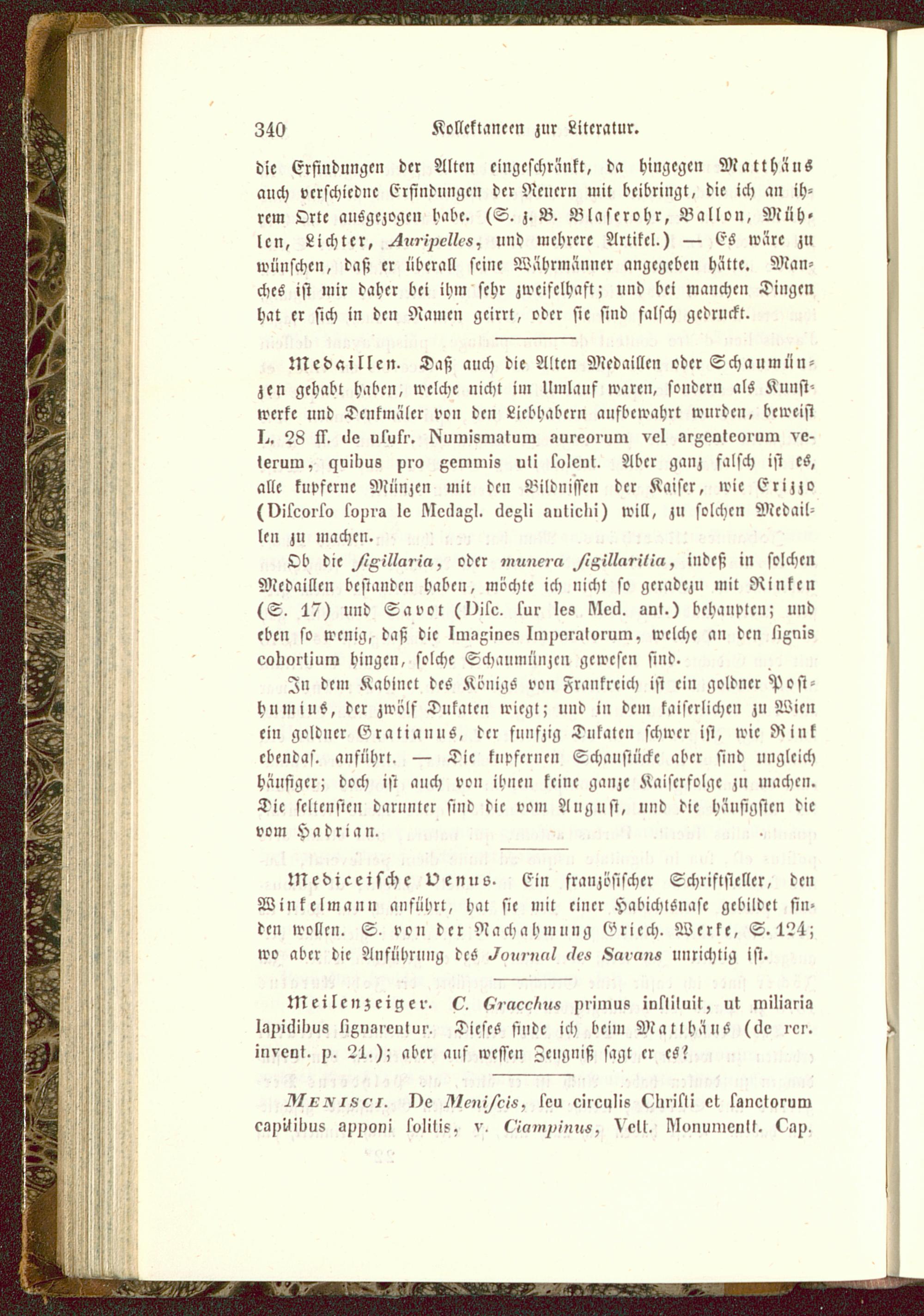die Erfindungen der Alten eingeschränkt, da hingegen Matthäusauch vrrschicdnc Erfindungen der Neuern mit beibringt, die ich an ih-rem Orte ausgezogen habe. (S. z.B. Blaserohr, Ballon, Müh-len, Lichter, ^,-,^c//c>«, und mehrere Artikel.) — ES wäre zuwünschen, daß er überall seine Währmänncr angegeben hätte. Man-ches ist mir daher bei ihm sehr zweifelhaft; und bei manchen Dingenhat er sich in den Namen geirrt, oder sie sind falsch gedruckt.