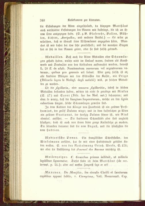 Medaillen. Daß auch die Alten Medaillen oder Schaumün-zen gehabt haben, welche nicht im Umlauf waren, sondern als Kunst-werke und Denkmäler von den Liebhabern aufbewahrt wurden, beweistI. 28 ll. i^e uluki'. I^umisnmtum aurcoium vel argenteorum ve-ierum. czuiliu8 pia gommis uli lolcnl. Aber ganz falsch ist es,alle kupferne Münzen mit den Bildnissen der Kaiser, wie Erizzo(vilcoi'lo toni'a le kleilagl. 6eßli autielii) will, zu solchen Medail-len zu machen.