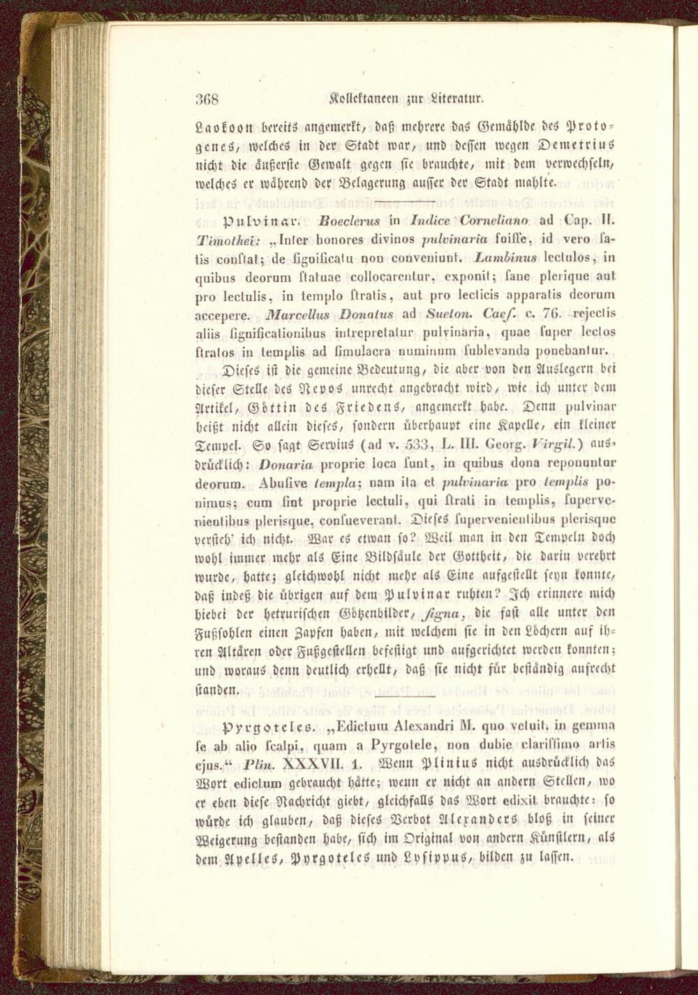 pyrnstelco. „I^clieluiu ^lexano'ii 1^1. nno veluil. i» geim»>ile sli ,ili<> 1'e.ilni, ijuain a l^r^olele, nun clukiie el.iinlini» ailisejus." ^'/»i. XXXVII. 1. Wenn PliniuS nicht ausdrücklich dasWort eclieluw gebraucht hätte; wenn er nicht an andern Stellen, woer eben diese Nachricht giebt, gleichfalls das Wort eilixil brauchte: sowürde ich glauben, daß dieses Verbot Alexandere bloß in seinerWeigerung bestanden habe, sich im Original von andern Künstlern, alsdem ApellcS, PyrgotelcS und LvsippuS, bilden zu lassen.
