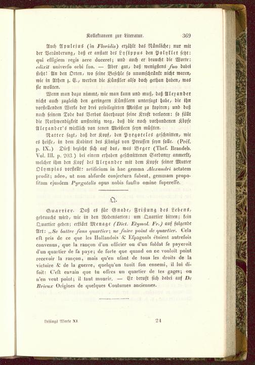 O.uarticr. Daß cS für Gnade, Fristung des Lebens,gebraucht wird, wie in den Redensarten: um Quartier bitten; keinQuartier geben; erklärt Menage auf folgende