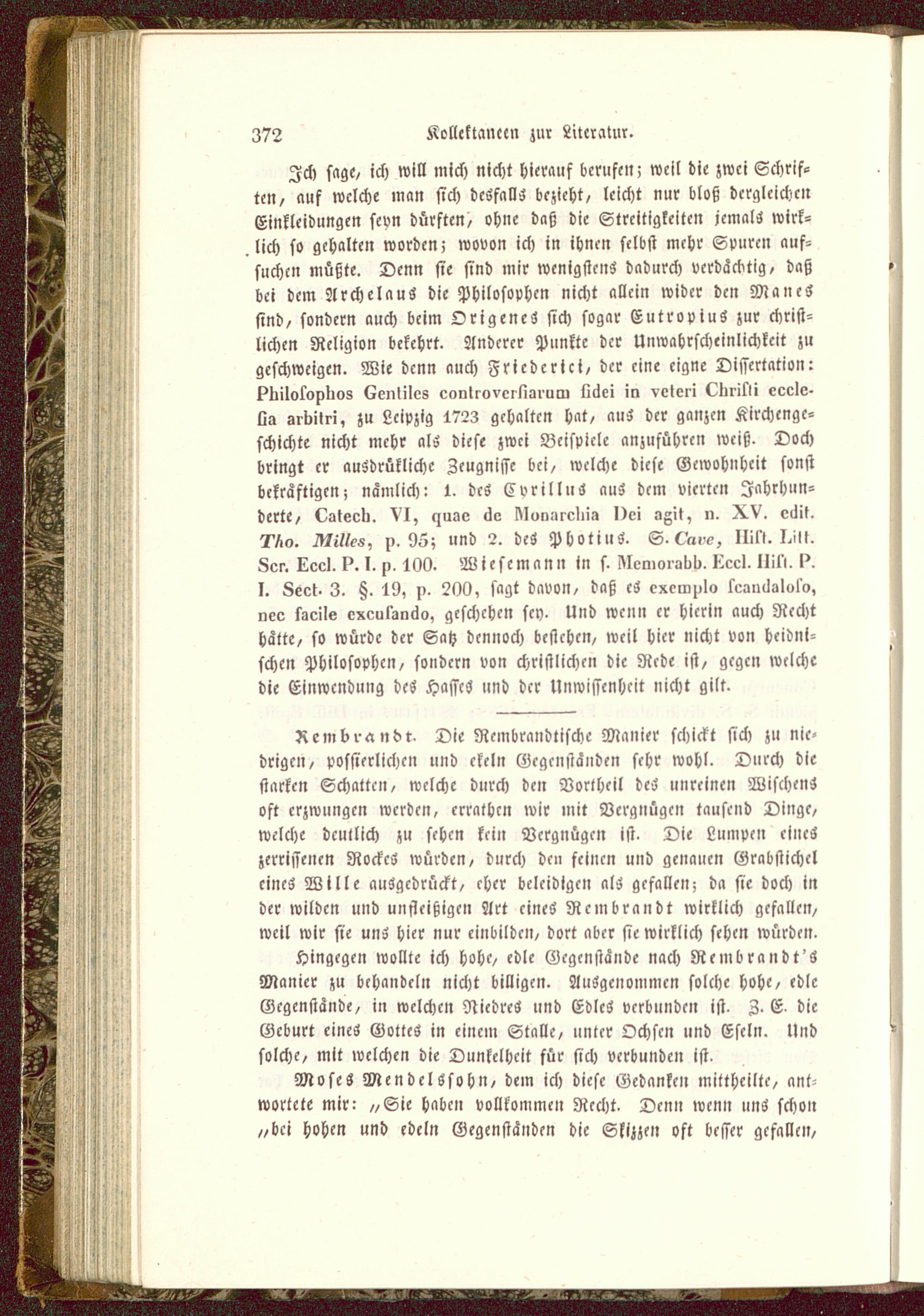 Hingegen wollte ich hohe, edle Gegenstände nach Rcmbrandt'SManier zu behandeln nicht billigen. Ausgenommen solche hohe, edleGegenstände, in welchen Niedres und Edles verbunden ist. Z. E dieGeburt eines Gottes in einem Stalle, unter Ochsen »nd Eseln. Undsolche, mit welchen die Dunkelheit für sich verbunden ist.