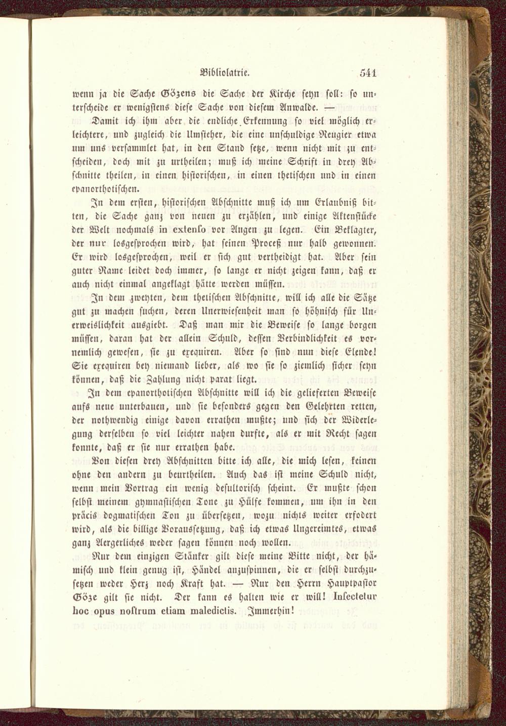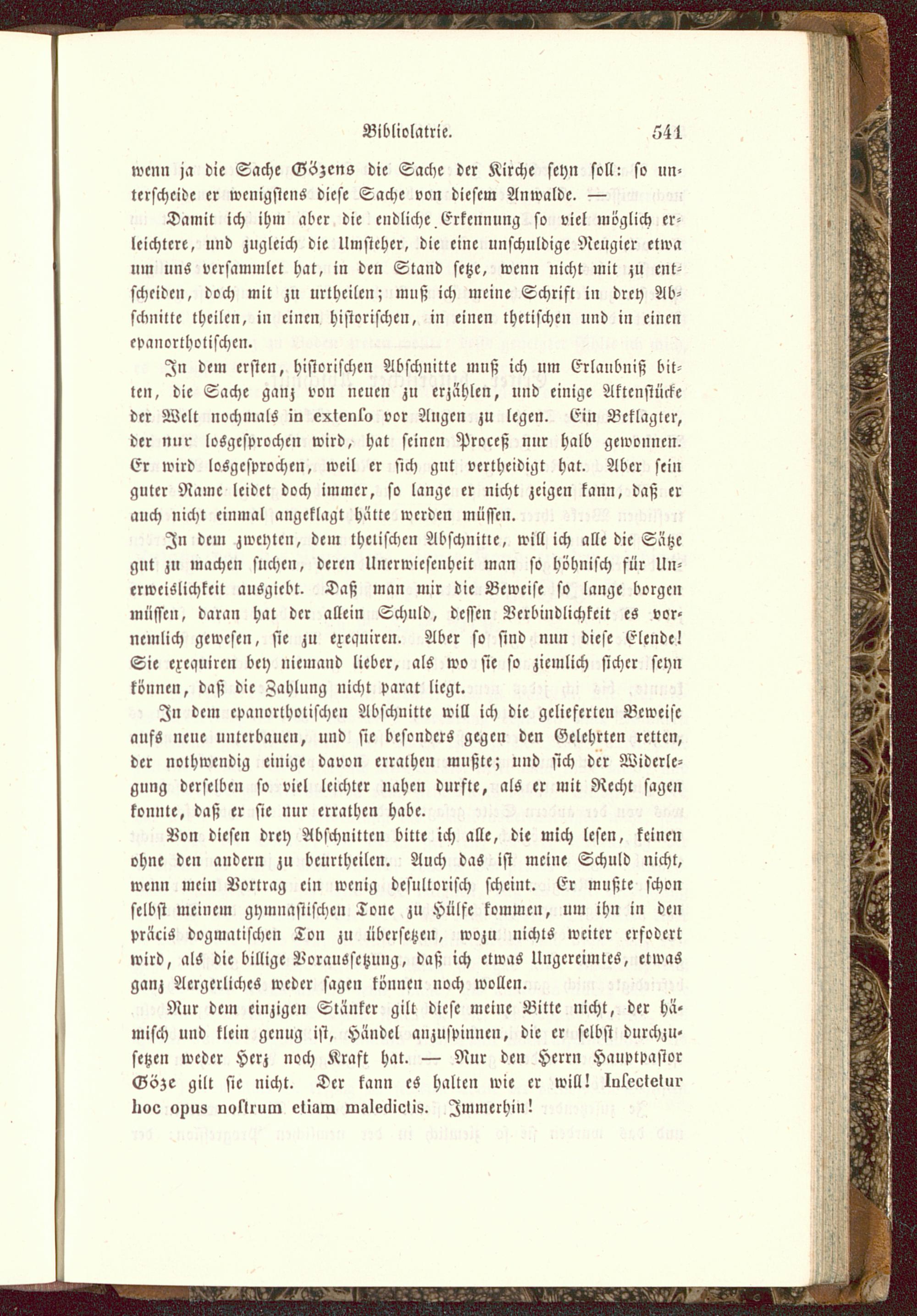 Nur dem einzigen Stänker gilt diese meine Bitte nicht, der hä-misch und klein genug ist, Händel anzuspinnen, die er selbst durchzu-setzen weder Herz noch Kraft hat. — Nur den Herrn HauptpastorGöze gilt sie nicht. Der kann cS halten wie er will! InleelvlurIwe opus nofiium etiarll wsleciietis. Immerhin!
