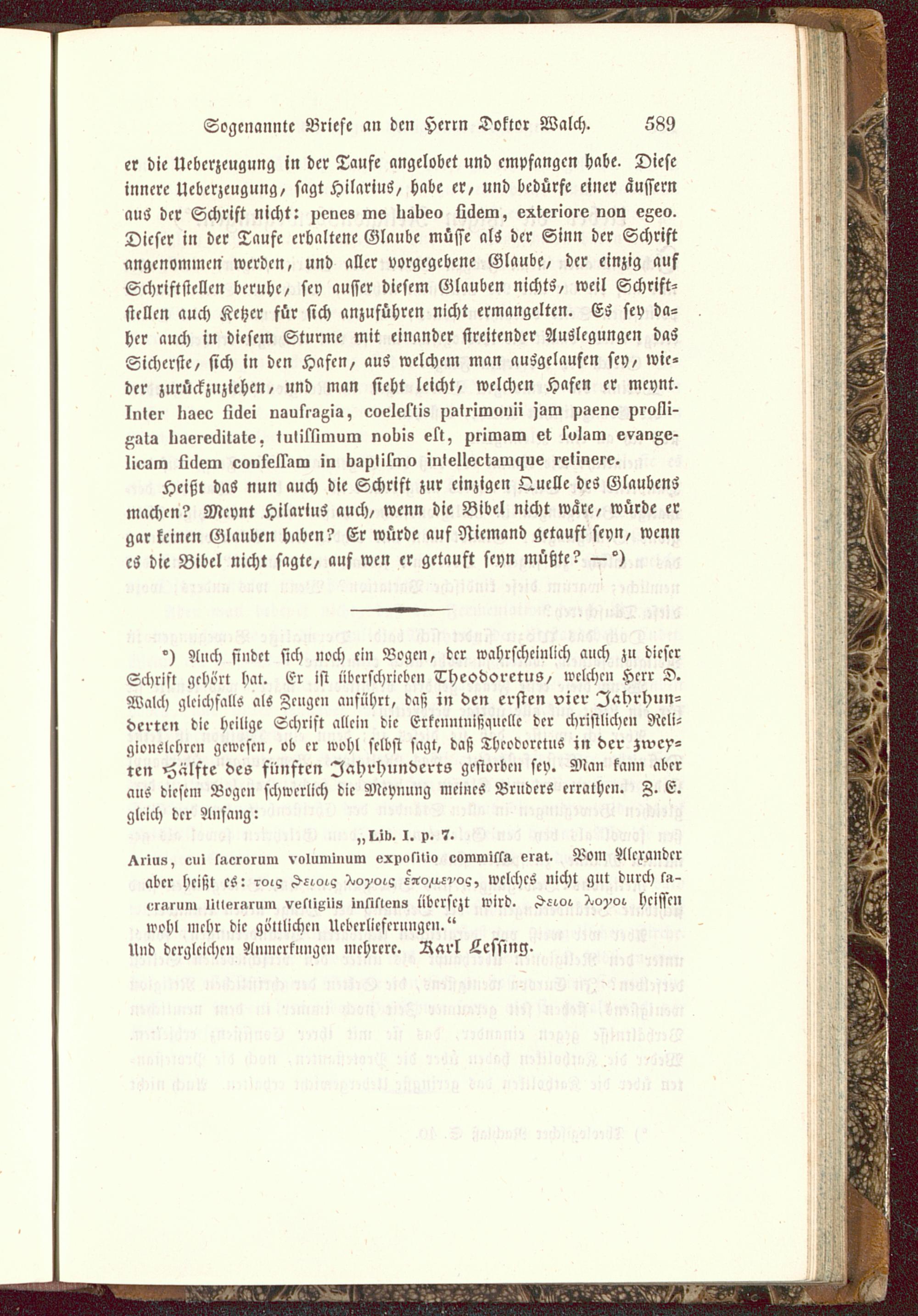 °) Auch findet sich »och ei» Bogen, der wahrscheinlich auch zu dieserSchrift gehört hat. Er ist überschrieben Theodoretus, welchen Herr D.Walch gleichfalls als Zeuge» «»führt, daß in den ersten vier Jahrhun-derten die heilige Schrift allein die Erkcnmnißquellc der christlichen Rcli-gionslcbrcn gewesen, ob er wohl selbst sagt, daß Thcodorctns in der zwey-ten Hälfte des fünften Jahrhunderts gestorben sev. Man kann aberaus diesem Bogen schwerlich die Mcvnung meines Bruders errathen. Z. E.gleich der Anfang: