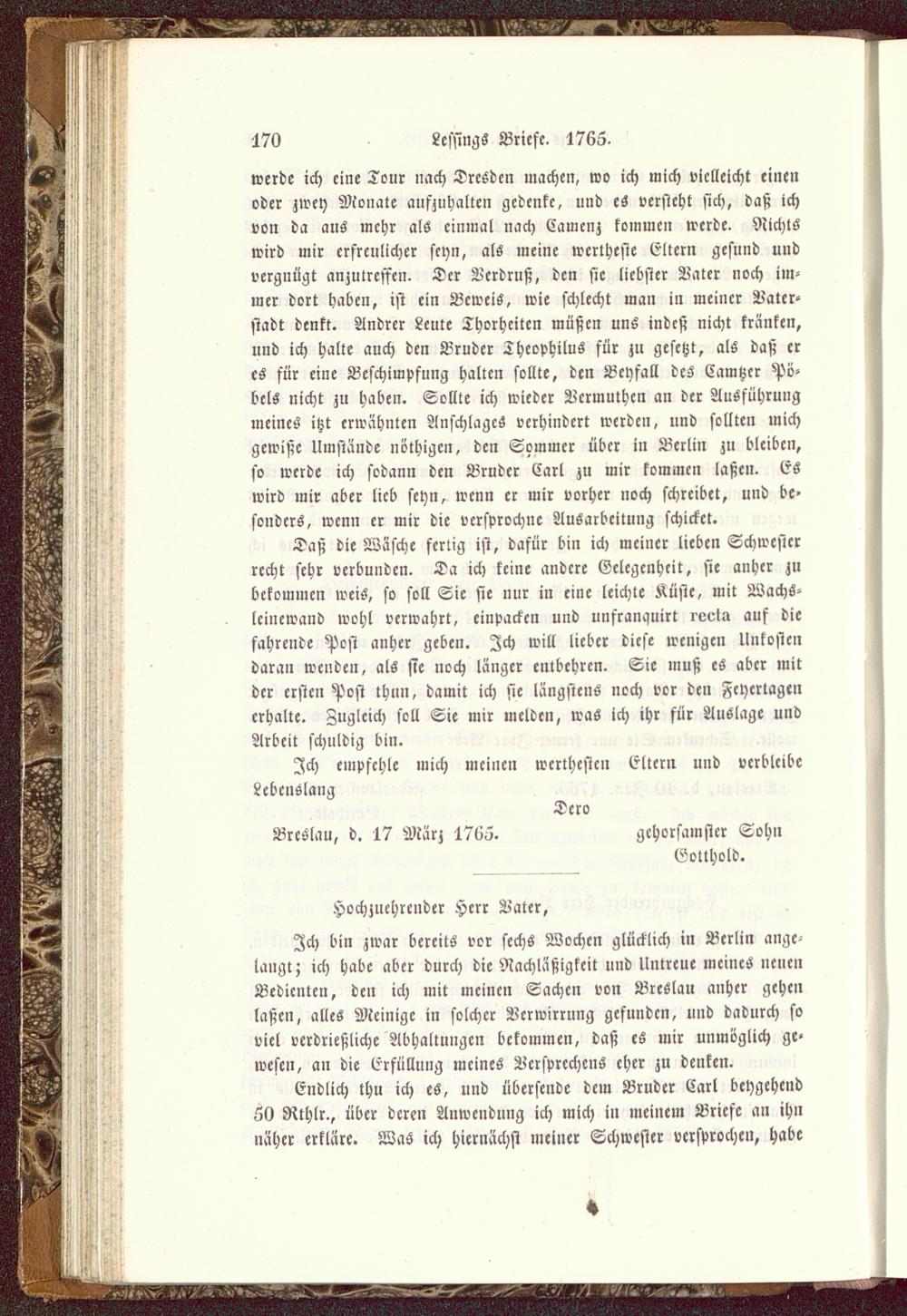 Breslau, d. 17 März 1766. gehorsamster Sohn