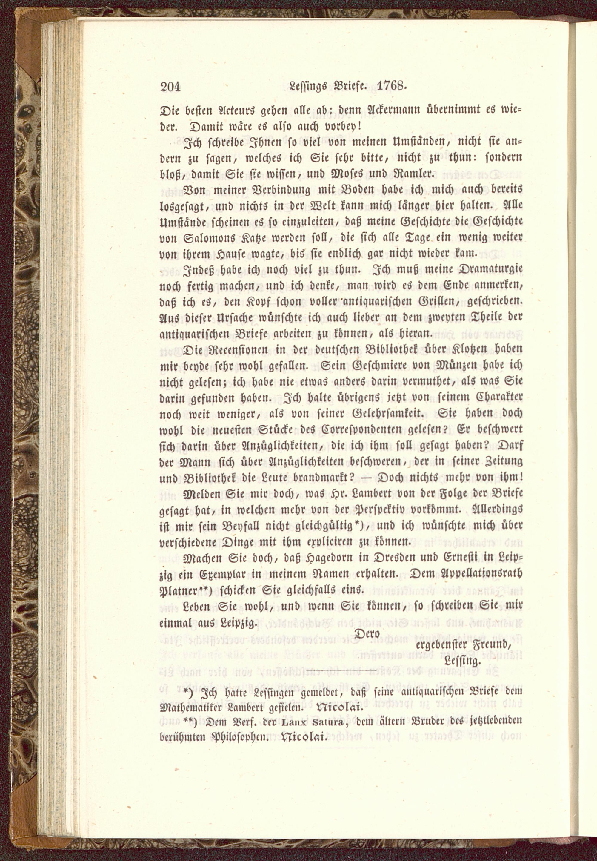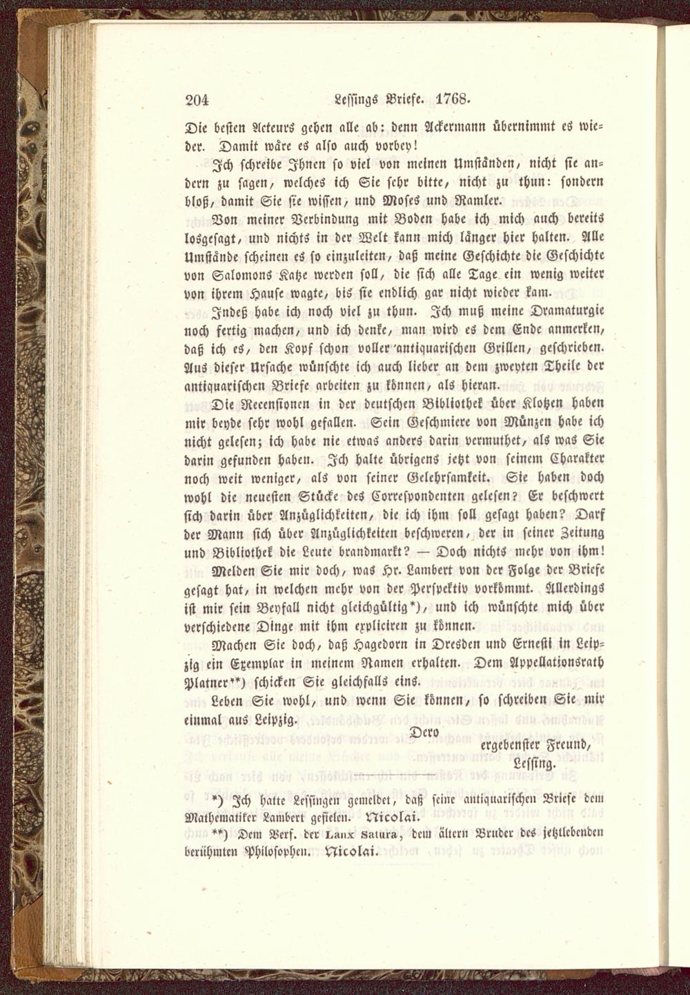 Lessings Briefe. 1768.
