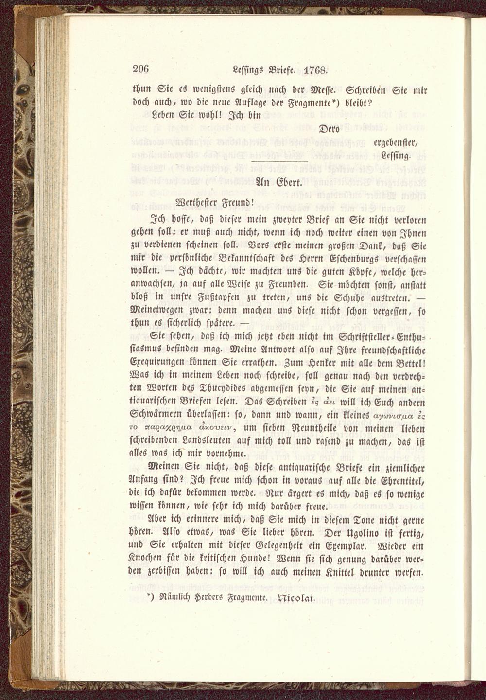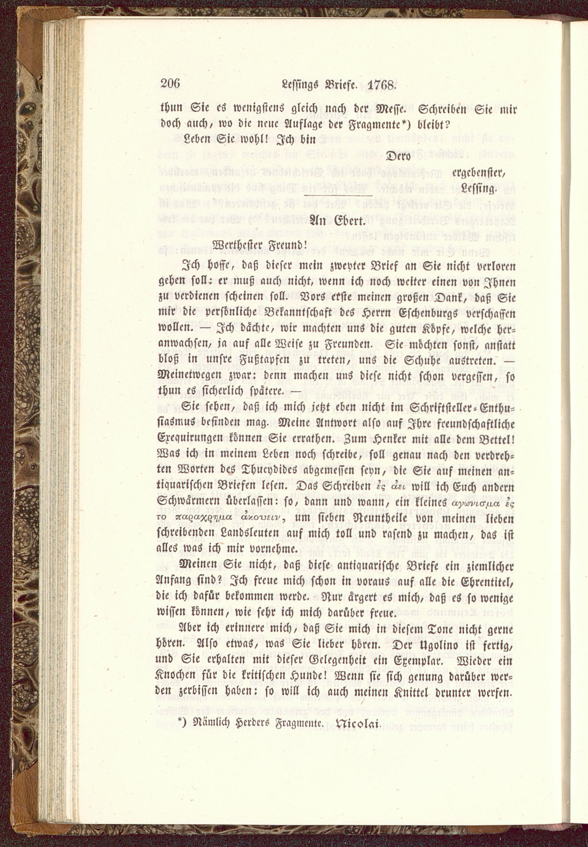 Ich hoffe, daß dieser mein zweyter Brief an Sie nicht verlorengehen soll: er muß auch nicht, wenn ich noch weiter einen von Ihnenzu verdienen scheinen soll. VorS erste meinen großen Dank, daß Siemir die persönliche Bekanntschaft des Herrn EschenburgS verschaffenwollen. — Ich dächte, wir machten uns die guten Köpfe, welche her-anwachsen, ja auf alle Weise zu Freunden. Sie möchten sonst, anstattbloß in unsre Fußtapfen zu treten, uns die Schuhe austreten. —Meinetwegen zwar: denn machen uns diese nicht schon vergessen, sothun es sicherlich spätere. —