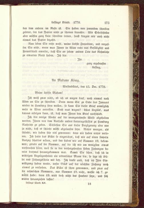 Ich weiß zwar nicht, ob ich es wagen darf, noch einmal nachWien an Sie zu schreiben. Denn wenn Sie zu Ende des Januarswieder in Hamburg sey» wollen, so kann Sie dieser Brief unmöglichmehr in Wien antreffen. Doch was wagen? Alles Unglück, wasdaraus erfolgen kann, ist, daß man Ihnen den Brief nachschickt.