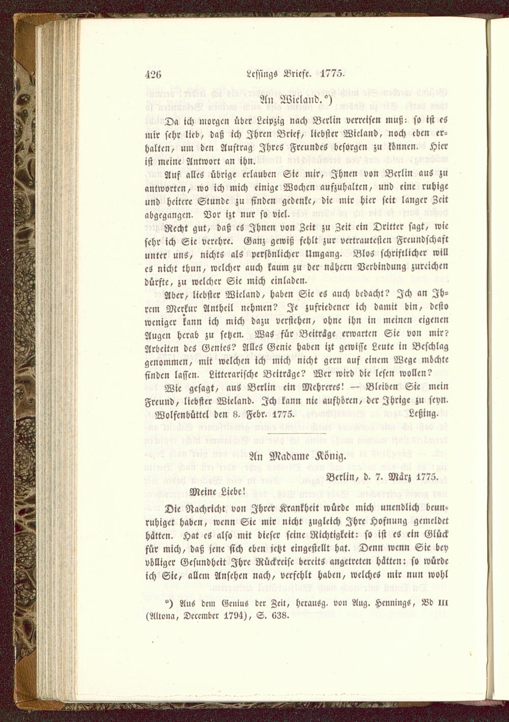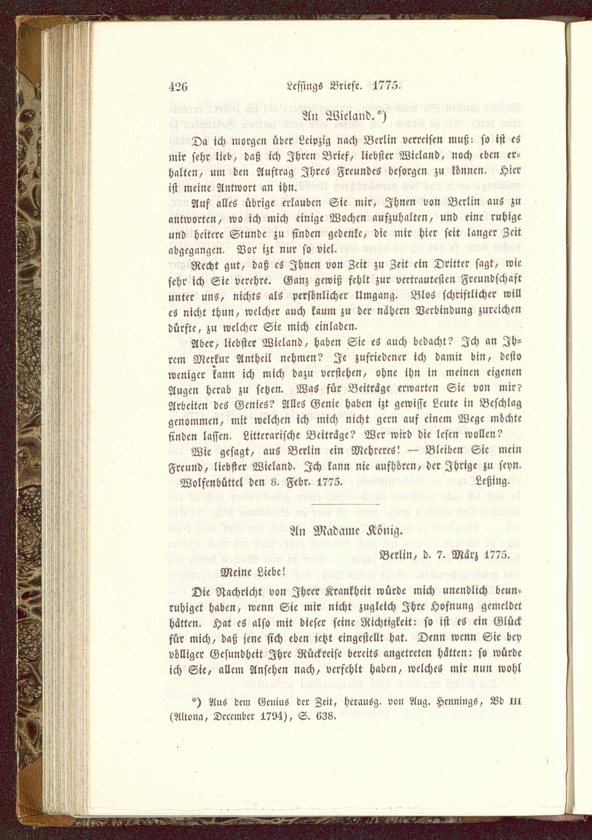 Wie gesagt, aus Berlin ein MchrcrcS! — Bleiben Sie meinFreund, liebster Wicland. Ich kann nie aufhören, der Ihrige zu sevn.Wolfcnbüttel den 8. Febr. 1775. Lcßing.