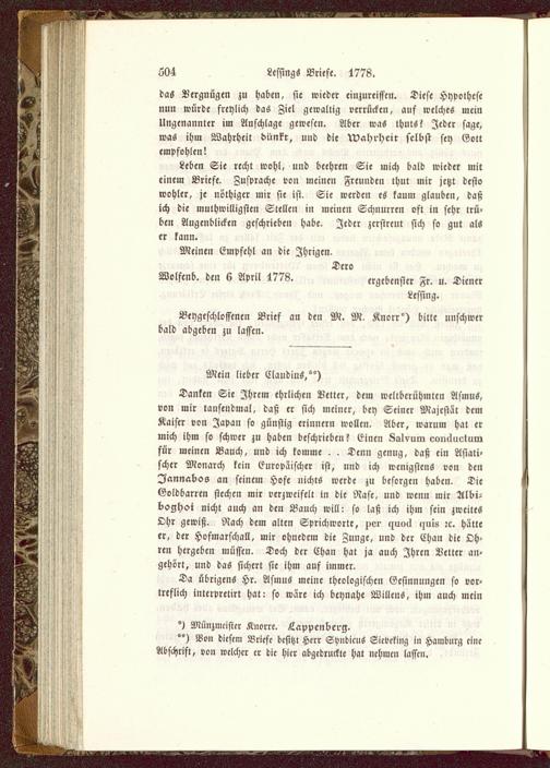 °°) Vo» diesem Briefe besitzt Herr SvndicuS Sicveking in Hamburg eineAbschrift, vo» welcher er die hier abgedruckte hat nehme» lasse».