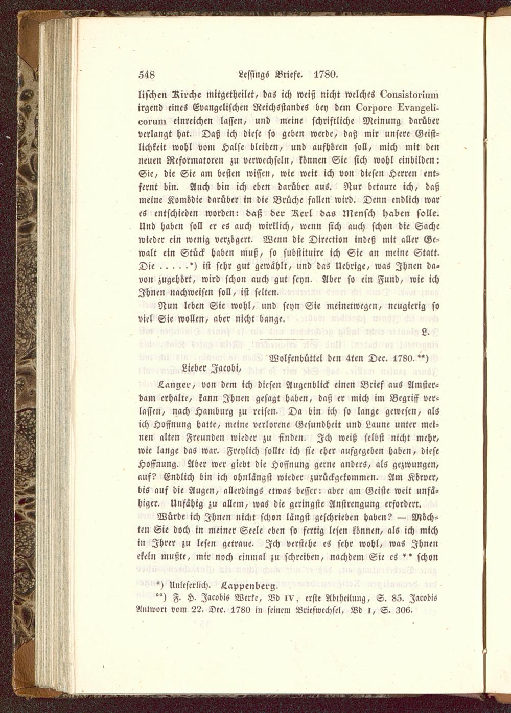 °°) F> H- Jacobis Werke, Bd iv, erste Abtheilung, S. 85. JacobisAntwort vom 22. Dec. 1780 I» seinem Briefwechsel, Bd I, S. 30«.