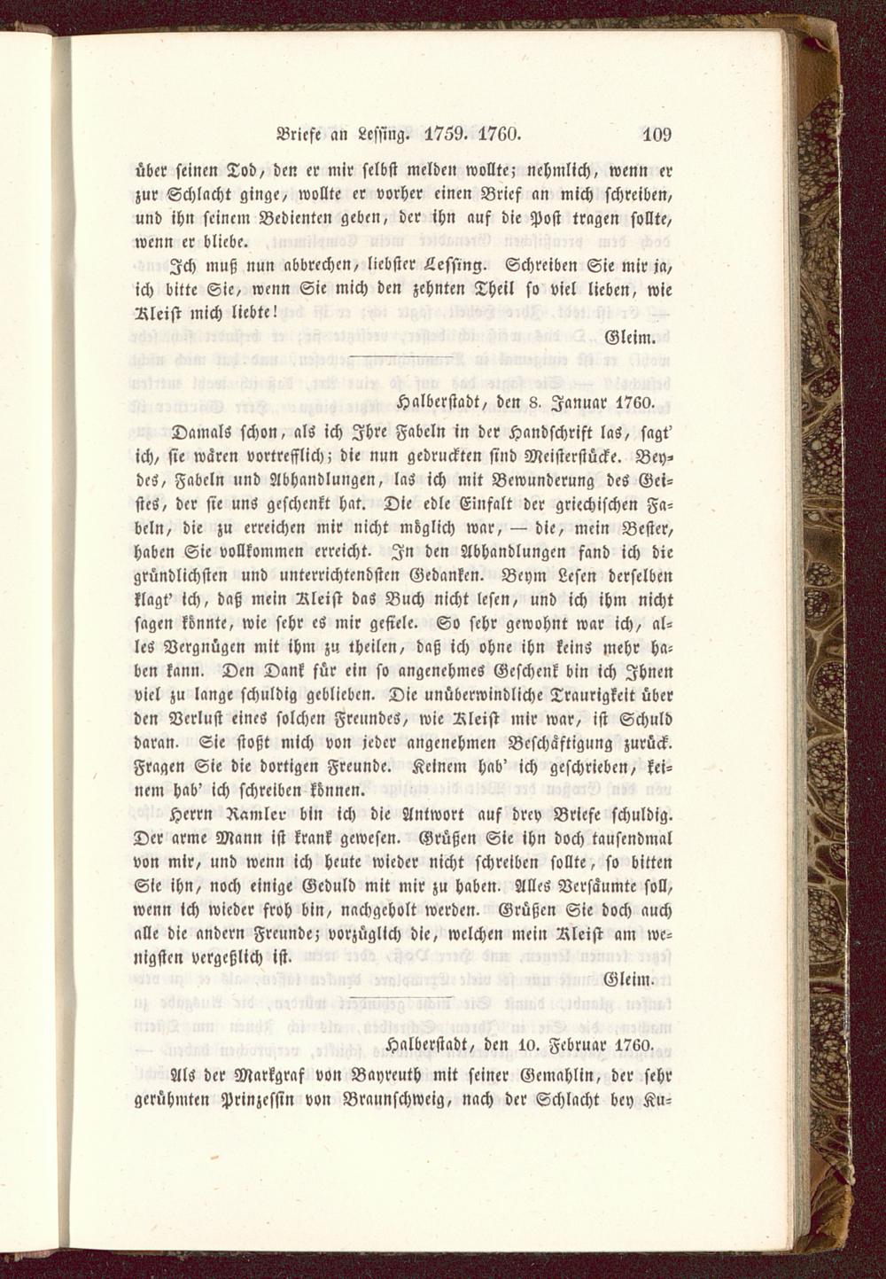 Herrn Ramler bin ich die Antwort auf drey Briefe schuldig.Der arme Mann ist krank gewesen. Grüßen Sie ihn doch tausendmalvon mir, und wenn ich heute wieder nicht schreiben sollte, so bittenSie ihn, noch einige Geduld mit mir zu haben. Alles Versäumte soll,wenn ich wieder froh bin, nachgeholt werden. Grüßen Sie doch auchalle die andern Freunde; vorzüglich die, welchen mein Rleist am we-nigsten vergeßlich ist.