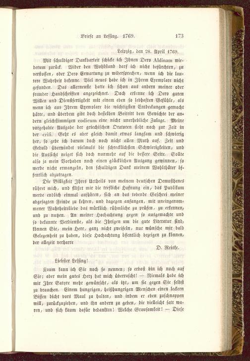 Die Billigkeit FhreS Urtheils von meinem deutschen DcmosthcncSrühret mich, und flößet mir die trcflichc Hofnung ein, das Publikumwerde endlich einmal aufhören, sich an das tobende Geschrei meinerabgesagten Feinde zu kehren, und dagegen anfangen, mit uneingenom-mener Wahrheitsliebe das würklich rühmliche zu prüfen, zu erkennen,und zu nutzen. An meiner Hochachtung gegen so ausgemachte undso bekannte Verdienste, als die Ihrigen um die gute Literatur sind,können Sie, mein Herr, ganz nicht zweifeln, nur wünsche mir baldGelegenheit zu haben, diese Hochachtung öffentlich bezeigen zu können,der allezeit verharre