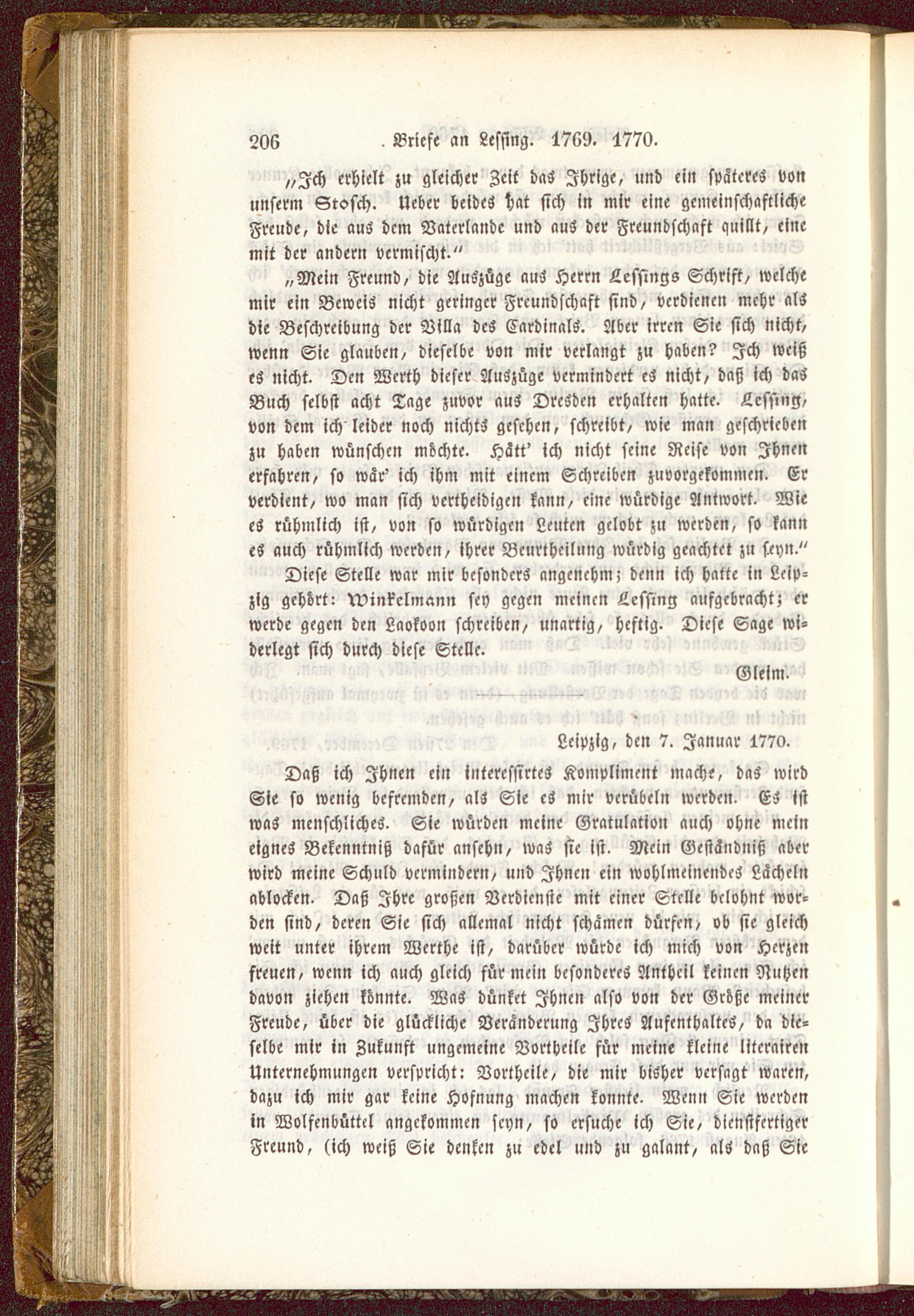 Diese Stelle war mir besonders angenehm, denn ich hatte in Leip-zig gehört: Winkclmami sey gegen meinen Lessing aufgebracht; erwerde gegen den Laokoon schreiben, unartig, heftig. Diese Sage wi-derlegt sich durch diese Stelle.