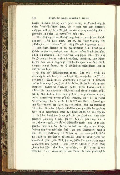 Und kurz; hieraus ist das gegenwärtige kleine Werk seinerFabeln entstanden, welches man als den ersten Band der gänz-liche» Umarbeitung seiner Schriften anznschen hat. Zch mußdie Ordnung, die er darin» beobachtet, umkehren, und Zhncnvorher von seinen beygefügten Abhandlungen über diese Dich-tungsart etwas sagen, ehe ich die Fabeln selbst ihrem Urtheileunterwerfen kann.