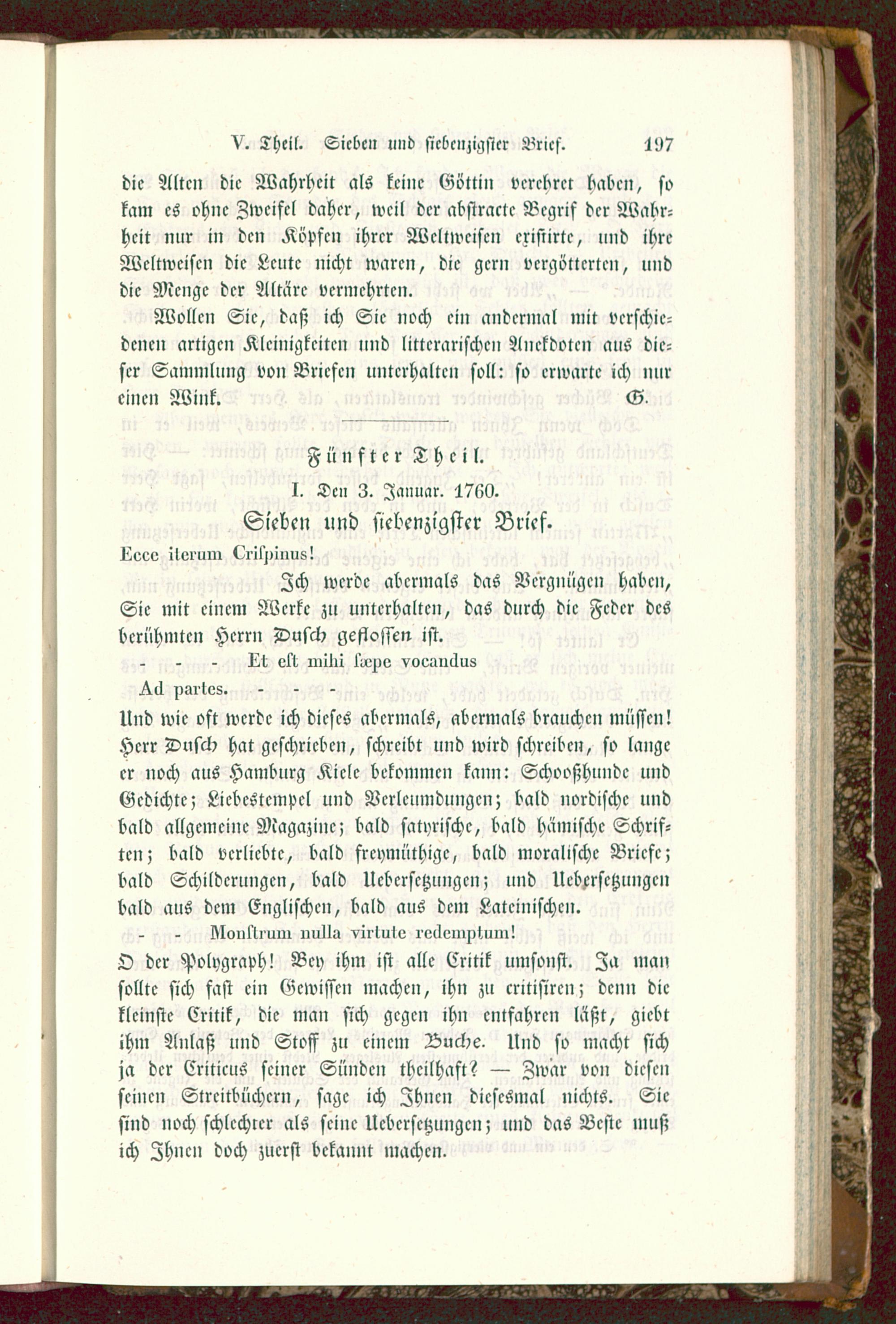 Fünfter Theil.I. Den 3. Januar. 1760.Sieben und siebenzigstcr Brief.
