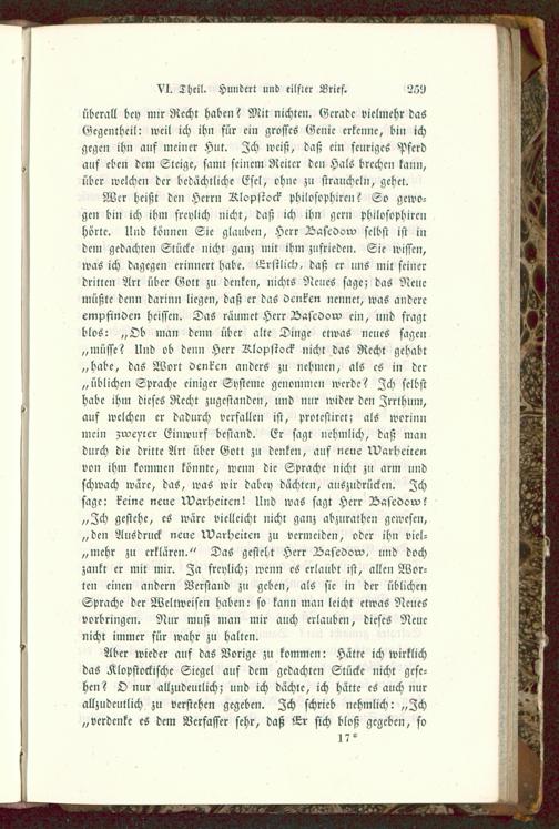 überall bey mir Recht haben? Mit Nichten. Gerade vielmehr dasGegentheil: weil ich ihn für ein grosses Genie erkenne, bin ichgegen ihn auf meiner Hut. Ich weiß, daß ein feuriges Pferdauf eben dem Steige, samt seinem Reiter den Hals brechen kann,über welchen der bcdächtlichc Esel, ohne zu straucheln, gehet.