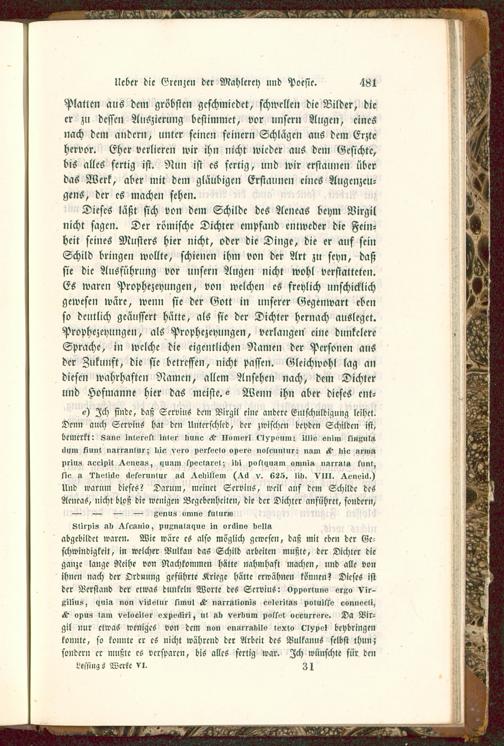 e) Ich finde, daß Servius dem Virgil eine andere Entschuldigung leihet.Denn auch Servius hat den Unterschied, der zwischen beyden Schilden ist,