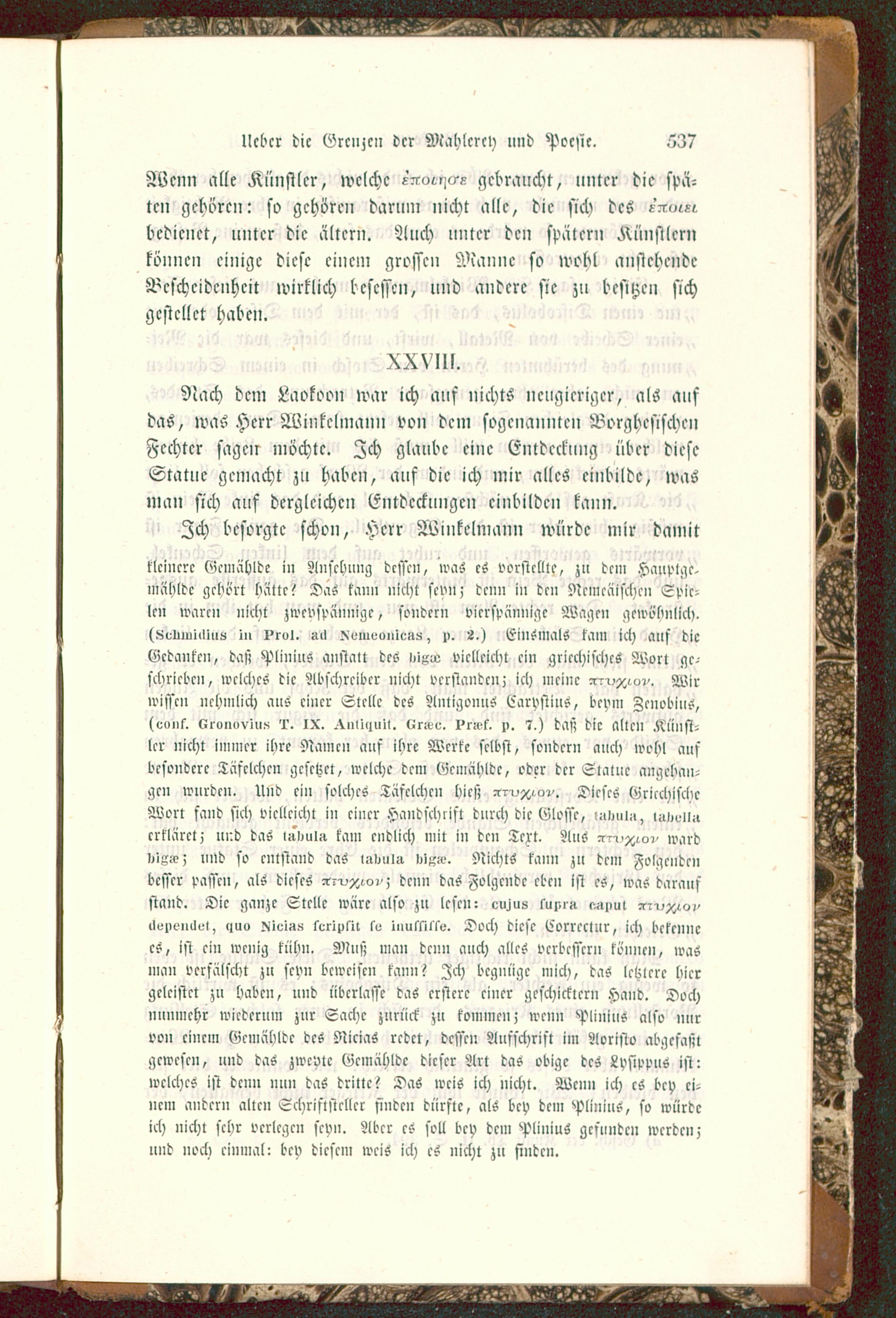 Nach dcm Laokoon war ich ans nichts »cugicrigcr, als ansdas, was Herr Winkclmann von dcm sogcnanntcn VorghcsischcnFcchtcr sagen möchte. Ich glaube eine Entdcckung übcr dieseStatue gemacht zu haben, ans die ich mir alles einbilde, wasman sich auf dergleichen Entdeckungen einbilden kann.