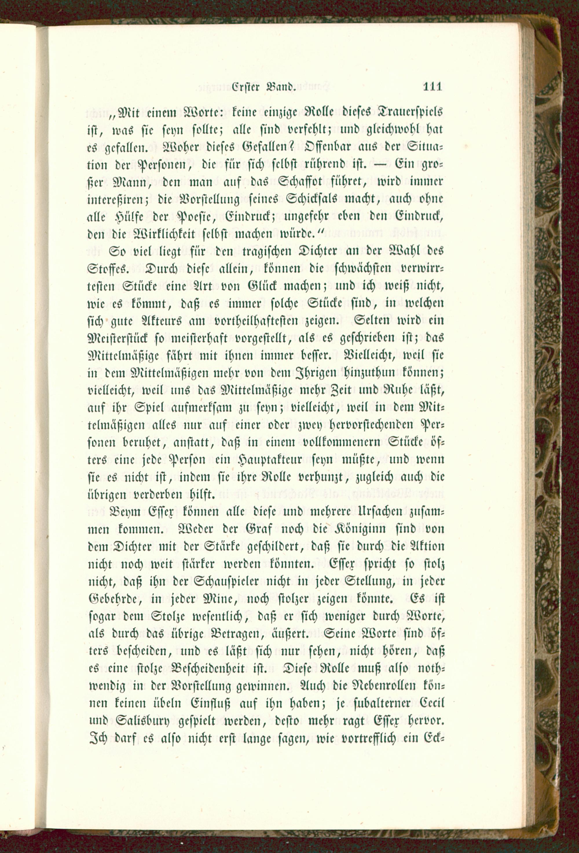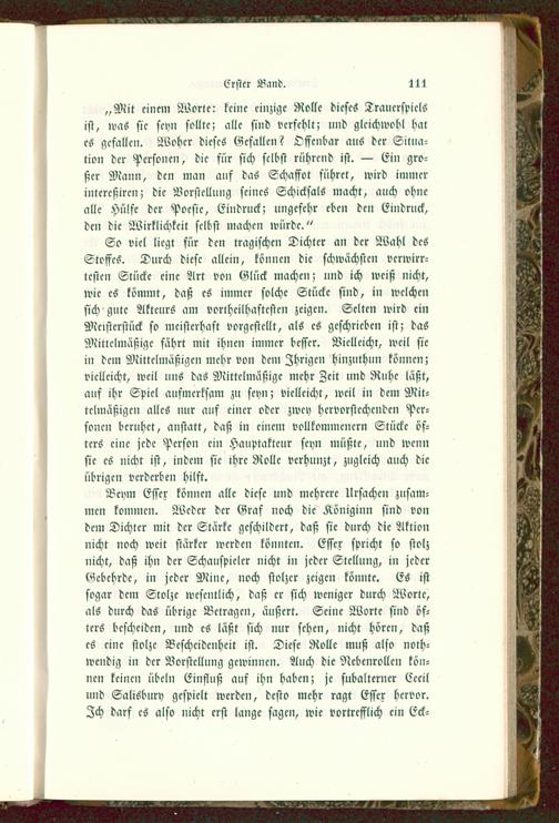 „Mit einem Worte: keine einzige Rolle dieses Trauerspielsist, was sie seyn sollte; alle sind verfehlt; und glcichwobl hates gefallen. Woher dieses Gefallen? Offenbar ans der Situa-tion der Personen, die für sich selbst rührend ist. — Ein gro-ßer Mann, den man auf das Schaffet führet, wird immerintcrcßircn; die Vorstellung seines Schicksals macht, auch ohnealle Hülfe der Poesie, Eindruck; ungefehr eben den Eindruck,den die Wirklichkeit selbst machen würde."