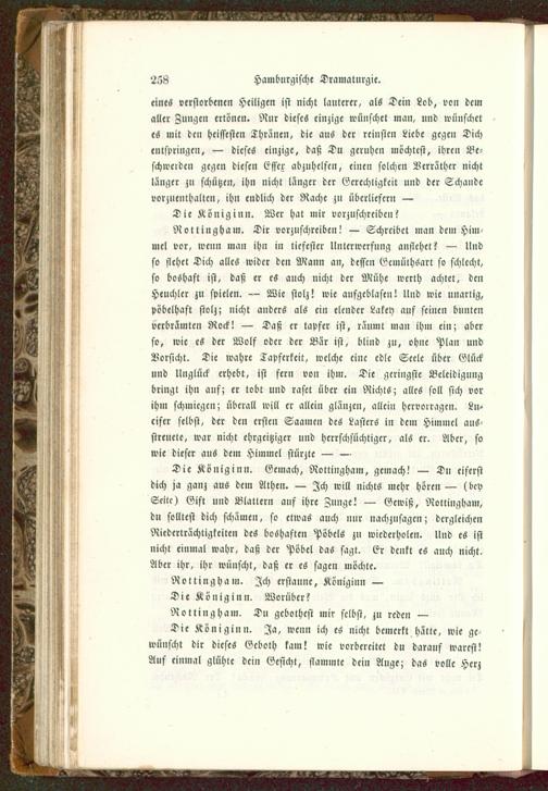 Die Königinn. Gemach, Nottingham , gemach! — Du eiferstdich ja ganz aus dem Athen . — Ich will nichts mehr hören — (beySeite) Gift und Blattern auf ihre Zunge! — Gewiß, Nottingham ,du solltest dich schämen, so etwas auch nur nachzusagen; dergleichenNiederträchtigkeiten des boshaften Pöbels zu wiederholen. Und eS istnicht einmal wahr, daß der Pöbel das sagt. Er denkt eS auch nicht.Aber ihr, ihr wünscht, daß er eS sagen möchte.