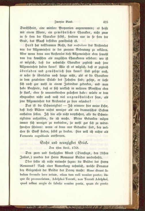 Hurd hat vollkommen Recht, das x«^o^c,^ des Aristotelesvon der Allgemeinheit in der zweyten Bedeutung zu erklären.Aber wenn denn nun Aristoteles diese Allgemeinheit eben sowohlvon den komischen als tragischen Charakteren erfodcrt: wie istes möglich, daß der nehmliche Charakter zugleich auch jeneAllgemeinheit haben kann? Wie ist es möglich, daß er zugleichüberladen und gewöhnlich seyn kann? Und gesetzt auch,er wäre so überladen noch lange nicht, als es die Charakterein dem getadelten Stücke des Johnson sind; gesetzt, er ließesich noch gar wohl in einem Zndividuo gedenken, und manhabe Beyspiele, daß er sich wirklich in mchrern Menschen ebenso stark, eben so ununterbrochen geäußert habe: würde er demohngcachtct nicht auch noch viel ungewöhnlicher seyn, alsjene Allgemeinheit des Aristoteles zu seyn erlaubet?