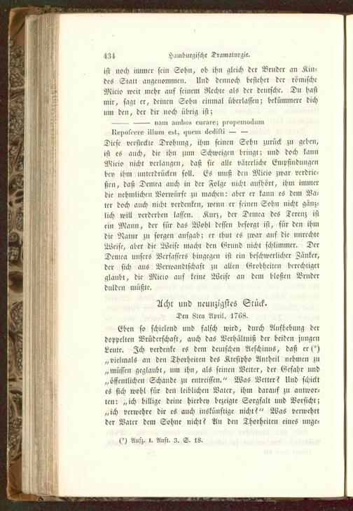 Iil?ntt>< <n <! illuin ei.!., <j»<>in ileilikli — —Diese vcrstccktc Drohung, ihm scincn Sohn zurück zu geben,ist cs auch, die ihn zum Schwcigcn bringt; und dock kannMicio nickt verlangen, daß sic allc väterliche Empfindungenbey ibm unterdrücken soll. Es muß den Micio zwar vcrdric-ßcn, daß Dcmca auch in der Folge nickt aufhört, ihm immerdie nchmlickcn Vorwürfe zu machen: aber cr kann cs dcm Va-tcr doch auch nicht vcrdcnkcn, wenn cr seinen Sohn nicht gänz-lich will vcrdcrbcn lassen. Kurz, dcr Dcmca des Tcrcnz istcin Mann, dcr für das Wohl dcsscn besorgt ist, für dcn ihmdic ?!atur zu sorgen aufgab; cr thut cs zwar auf die unrcchteWcisc, aber dic Weise macht dcn Grund nicht schlimmer. DcrDcmca unscrS Verfassers hingegen ist cin bcschwcrlichcr Zänker,der sich aus Verwandtschaft zu allen Grobheiten bcrcchtigctglaubt, dic Micio auf kcinc Weise an dcm bloßen Vrudcrdulden müßte.