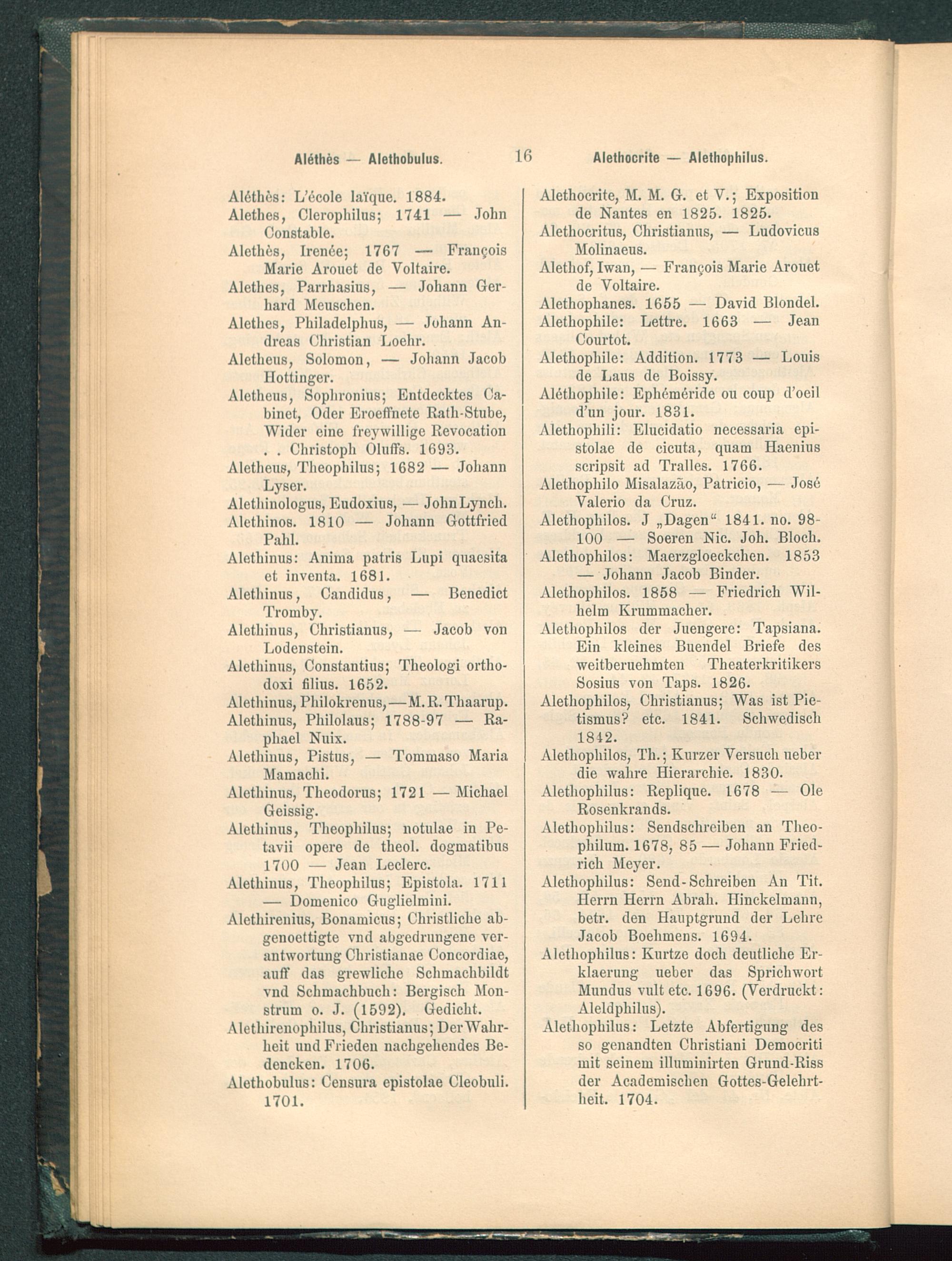 Alethes, Philadelphus, — Johann An-dreas Christian Loehr .