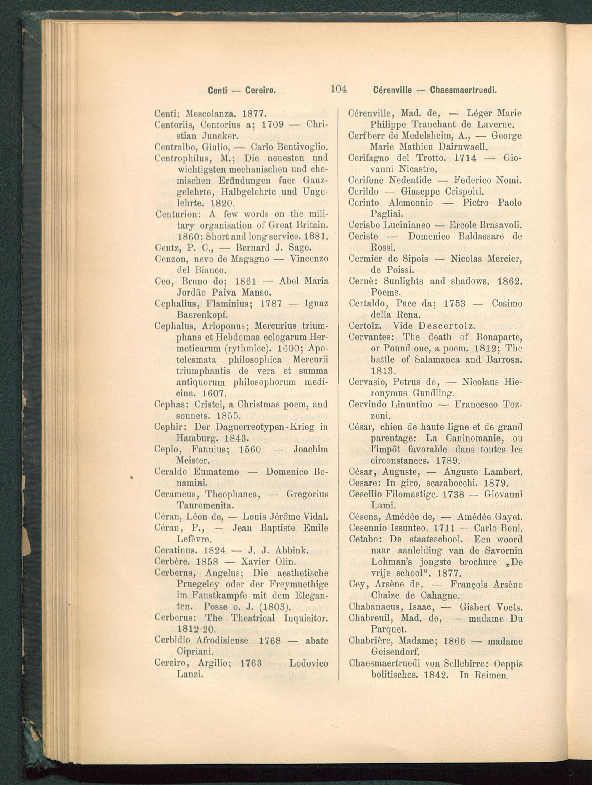 Cent! — Cereiro. 104 C§renville — Chaesmaertruedi.
