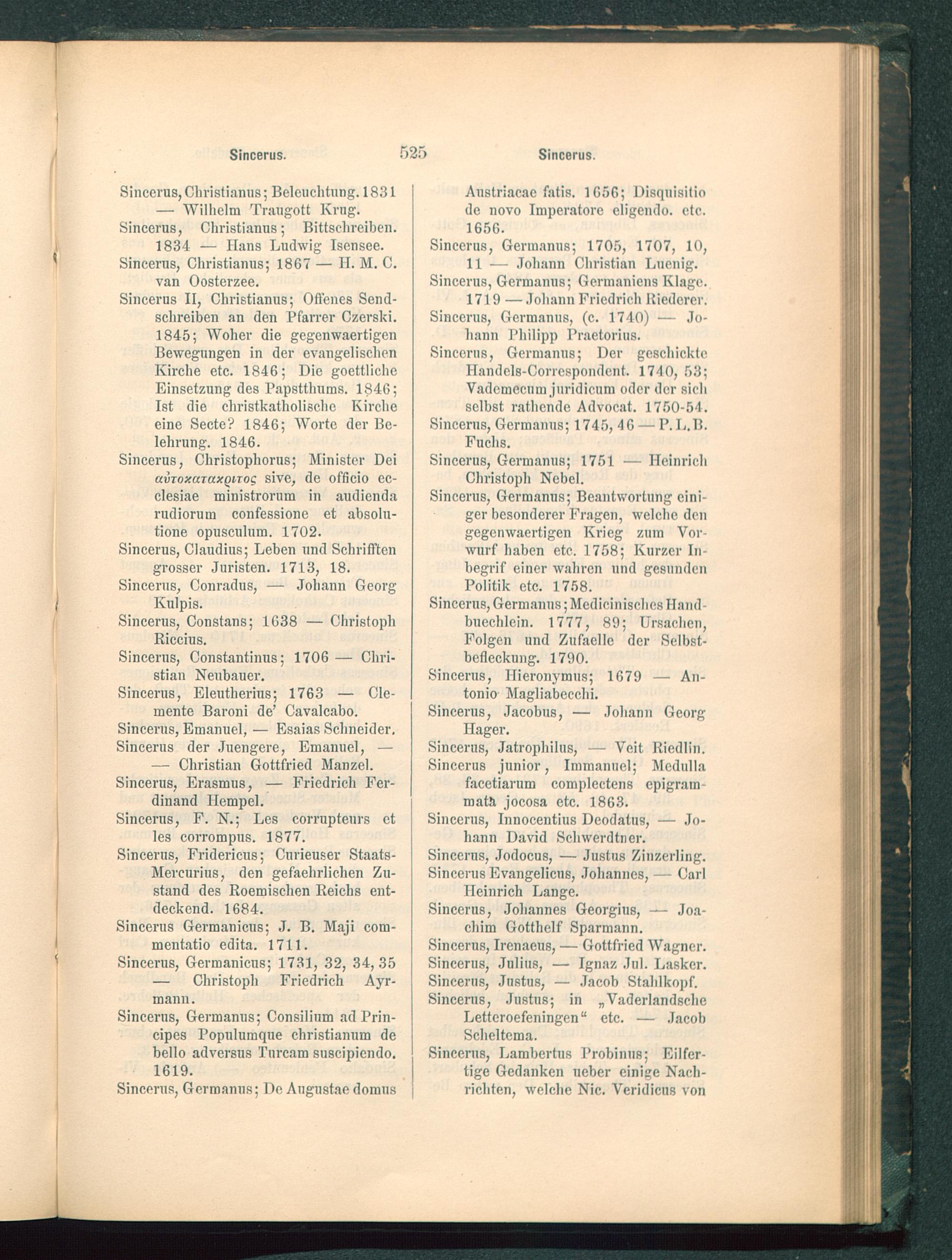 Sincerus, Germanus; Der geschickteHandels-Correspondent. 1710, 53;Vademecnm juridicum oder der sicliselbst rathende Advocat. 1750-54.