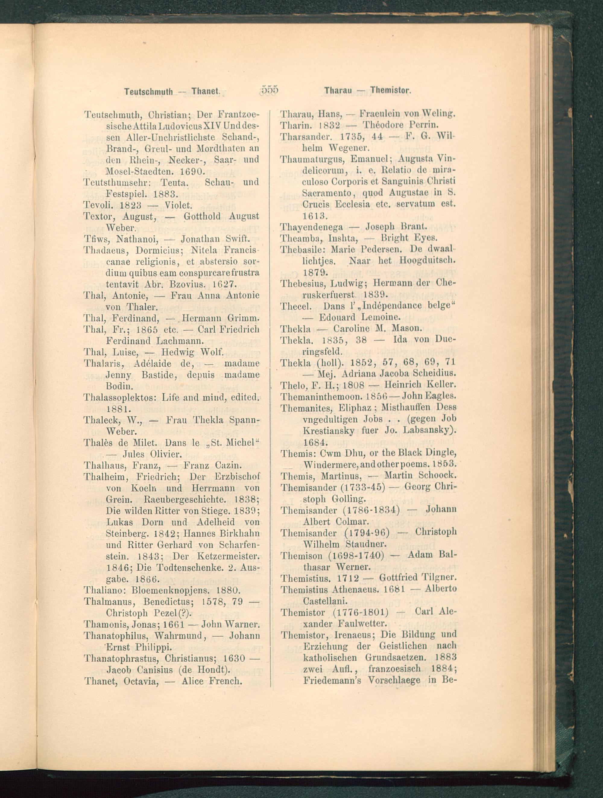 Themistor, Irenaeus ; Die Bildung undErziehung der Geistlichen nachkatholischen Grundsaetzen. 1883zwei Aufl., franzoesisch 1884;Friedemann’ß Vorschlaege in Be-