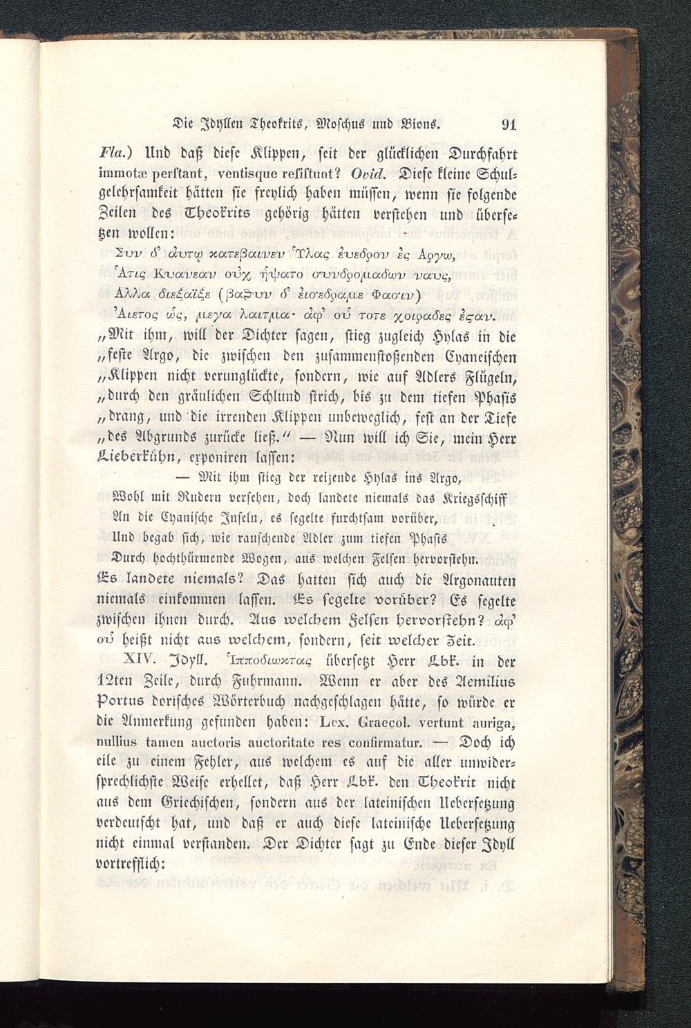 Die Idyllen Theokrits , Moschus und BionS. 91