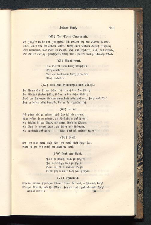 Spanne meinen schwachen Mann, spann ihn aus, o Himmel, doch!Seufzet Mocris; und ihr Mann: Himmel, ach, zerbrich mein Joch!LeMgS Werke V 1y
