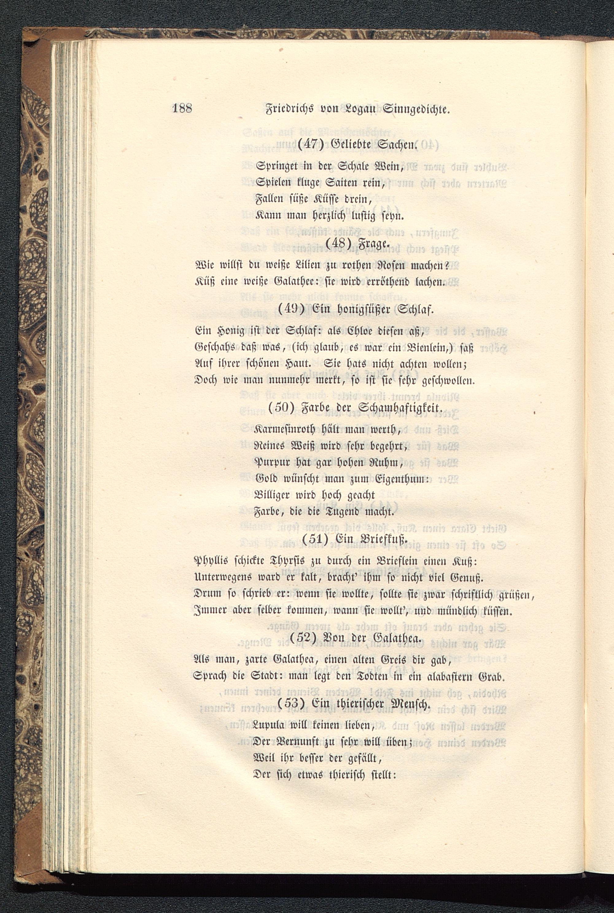 Wie willst du weiße Lilien zu rothen Rosen machen?Küß eine weiße Galathcc: sie wird crrvthcnd lachen.
