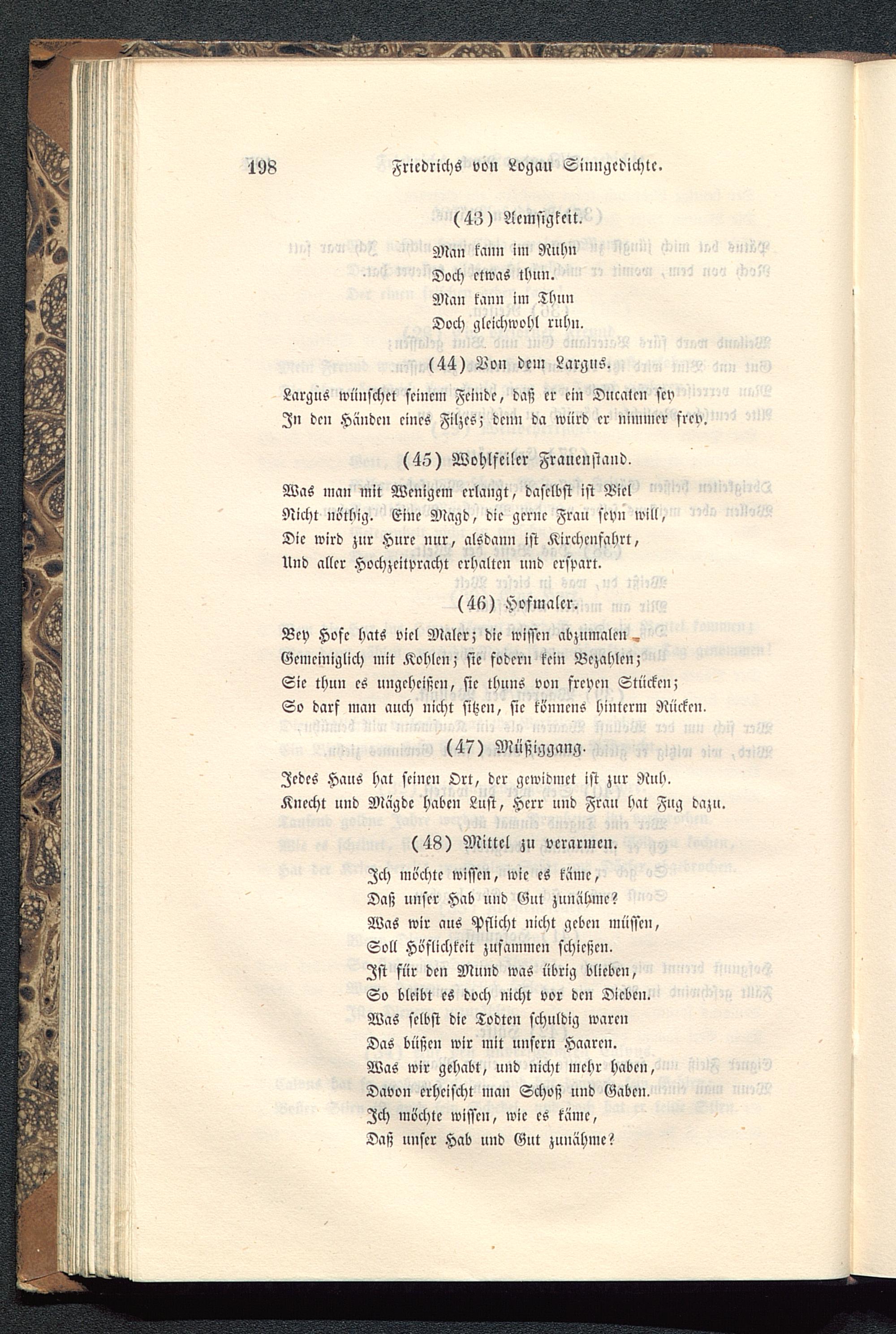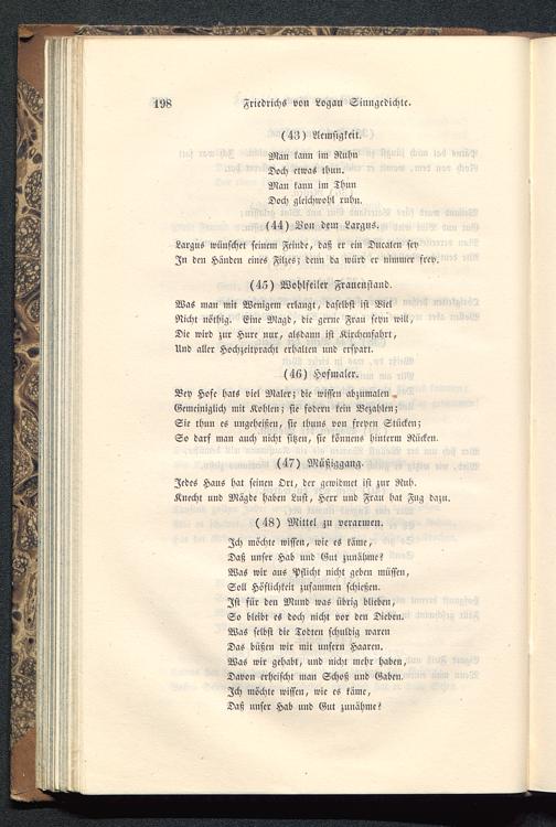 Bey Hofe hats viel Maler, die wissen abzumalen^Gemeiniglich mit Kohlen; sie fodcrn kein Bezahlen;Sie thu» es ungeheißen, sie thuns von freyen Stücken;So darf man auch nicht sitzen, sie tonncns hinterm Rücken.