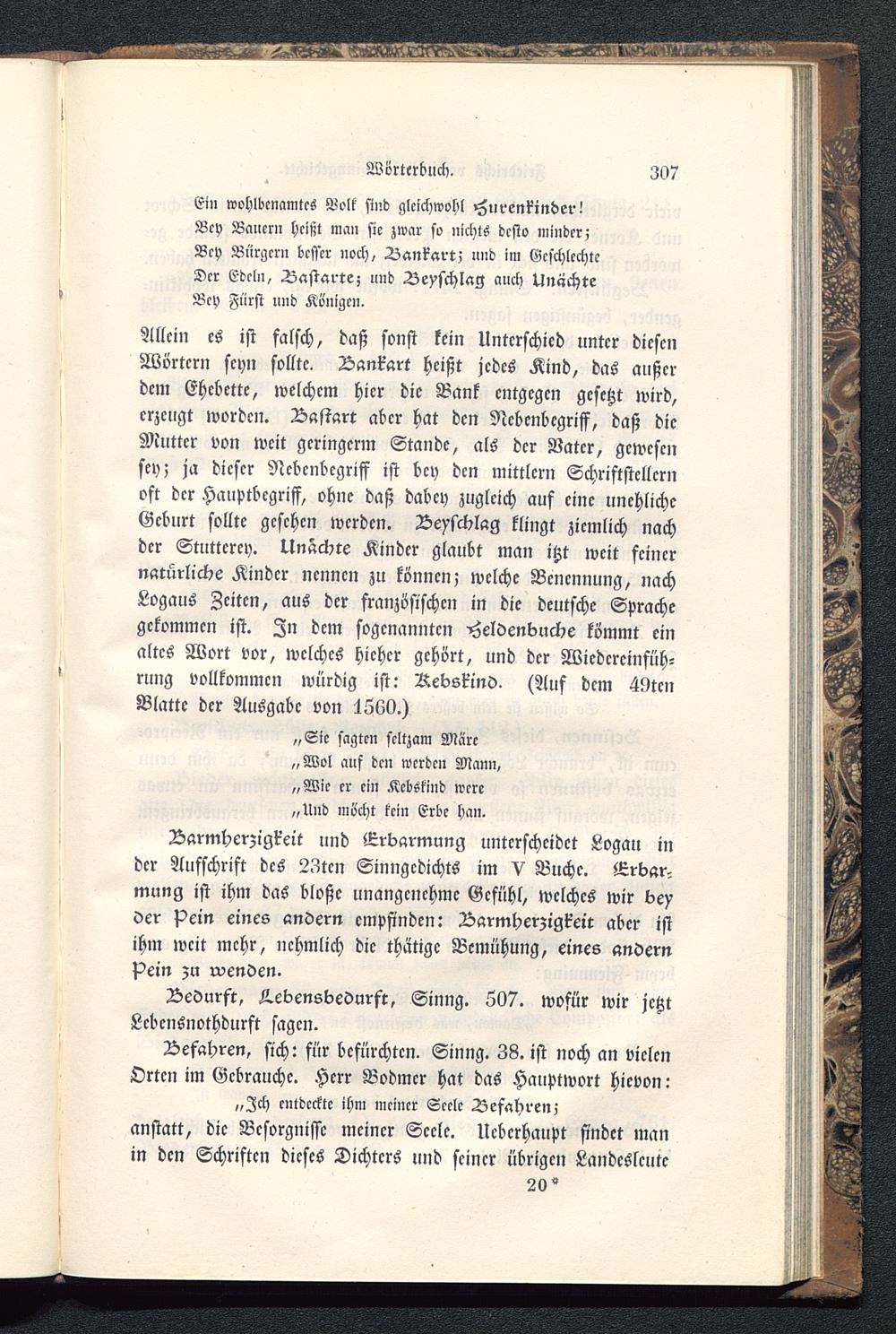 Allein es ist falsch, daß sonst kein Unterschied unter diesenWörtern seyn sollte. Bankart heißt jedes Kind, das außerdem Ehebette, welchem hier die Bank entgegen gesetzt wird,erzeugt worden. Bastart aber hat den Ncbcnbcgriff, daß dieMutter von weit geringerm Stande, als der Batcr, gewesensey; ja dieser Ncbcnbcgriff ist bcy den mittlern Schriftstellernoft der Hauptbcgriff, ohne daß dabey zugleich auf eine unehlichcGeburt sollte gesehen werden. Beyschlag klingt ziemlich nachder Stuttcrcy. Unächte Kinder glaubt man itzt weit feinernatürliche Kindcr ncnncn zu können; welche Benennung, nachLogalls Zeiten, aus der französischen in die deutsche Sprachegekommen ist. Zn dem sogenannten -Heldenbnche kömmt einaltes Wort vor, welches hiehcr gehört, und der Wiedereinfüh-rung vollkommen würdig ist: Rebskind. (Auf dem 49tcnBlatte der Ausgabe von 4560.)