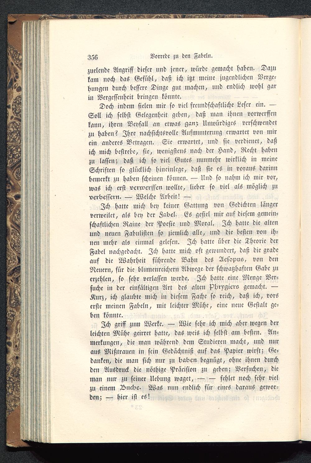 Ich hatte mich bey keiner Gattung von Gedichten langerverweilet, als bey der Fabel. Es gefiel mir auf diesem gemein-schaftlichen Raine der Poesie und Moral. Ich hatte die altenund neuen Fabulistcn so ziemlich alle, und die besten von ih-nen mehr als einmal gelesen. Ich hatte über die Theorie derFabel nachgedacht. Ich hatte mich oft gewundert, daß die gradeauf die Wahrheit führende Bahn des Acsopus, von denNeuern, für die blumcnrcichcrn Abwege der schwatzhaften Gabe zucrzchlen, so sehr verlassen werde. Ich hatte eine Menge Ver-suche in der einfältigen Art des alten Phrygicrs gemacht. —Kurz, ich glaubte mich in diesem Fache so reich, daß ich, vorserste meinen Fabeln, mit leichter Mühe, eine neue Gestalt ge-ben könnte.