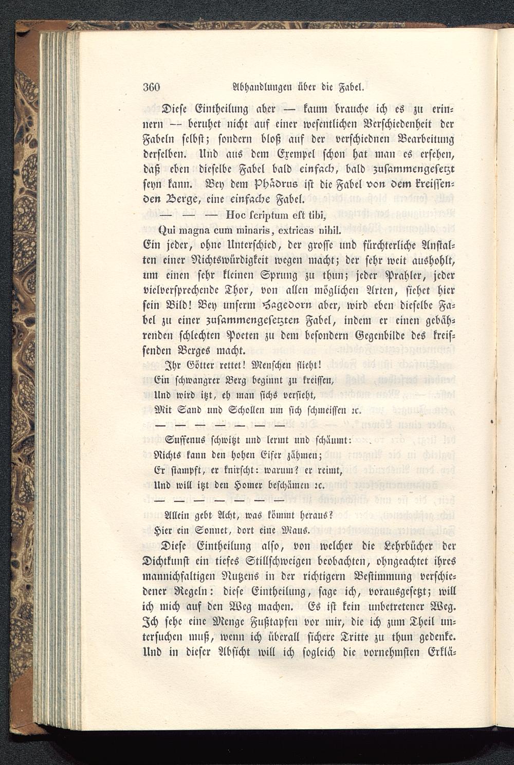 Diese Einthcilung aber — kaum brauche ich es zu erin-nern — beruhet nicht auf einer wesentlichen Verschiedenheit derFabeln selbst; sondern bloß auf der vcrschicdncn Bearbeitungderselben. Und ans dem Exempel schon hat man es ersehen,daß eben dieselbe Fabel bald einfach, bald zusammengesetztseyn kann. Bey dem Phädrus ist die Fabel von Sem kreissen-den Nerge, eine einfache Fabel.— — Hoe scrlptum eK tibi,