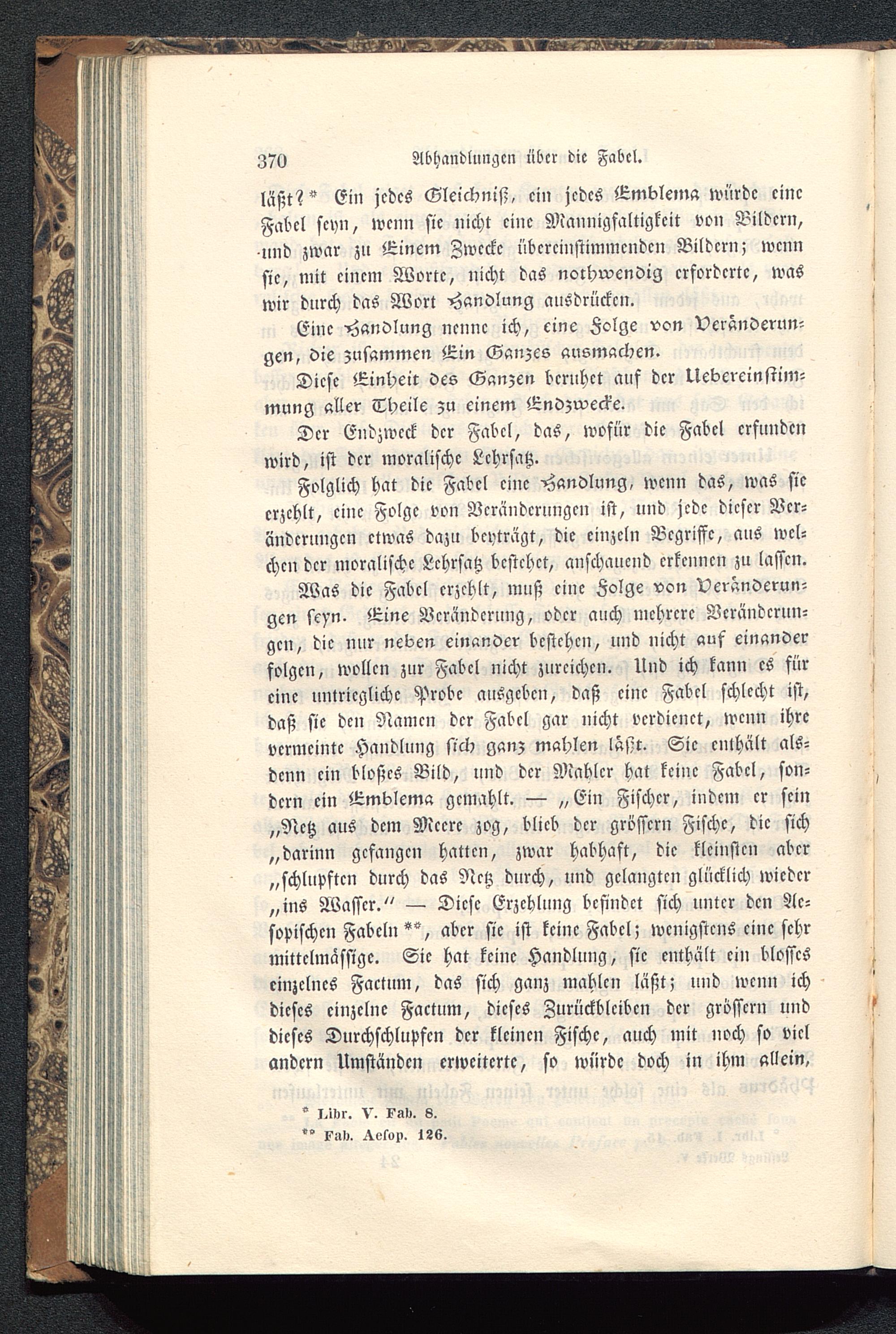 Folglich hat die Fabel eine -Handlung, wenn das, was siecrzchlt, cinc Folge von Veränderungen ist, und jede dieser Ver-änderungen etwas dazu beyträgt, die einzeln Begriffe, aus wel-chen der moralische Lehrsatz bestehet, anschauend crkcnncn zu lasscn.