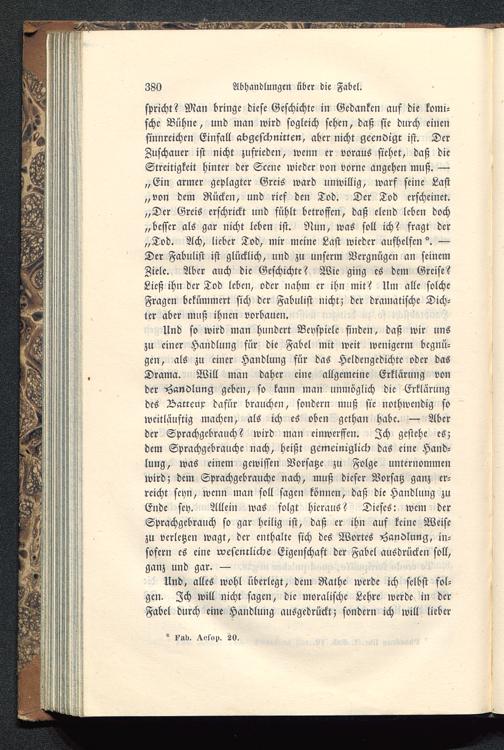 Und, alles wohl überlegt, dem Rathe werde ich selbst fol-gen. Ich will nicht sagen, die moralische Lehre werde in derFabel durch eine Handlung ausgedrückt; sondern ich will lieber