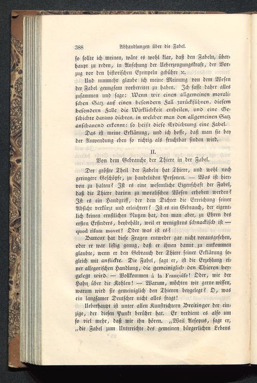 Und nunmehr glaube ich meine Meinung von dem Wesender Fabel genugsam vorbereitet zu haben. Ich fasse daher alleszusammen und sage: Wenn rvir einen allgemeinen morali-schen Saiz auf einen besondern Fall zurückführen, diesembesondern Lalle die Wirklichkeit ertheilen, und eine Ge-schichte daraus dichten, in rvelcher man den allgemeinen Salzanschauend erkennt: so heißt diese Erdichtung eine Fabel.