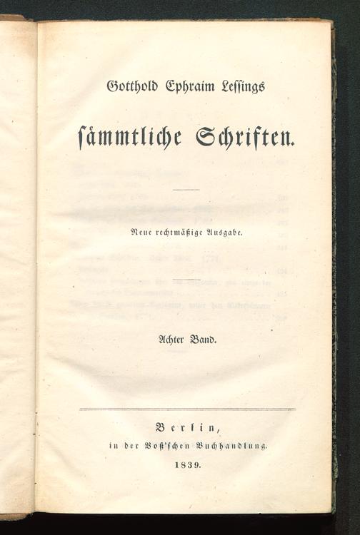 Gotthold Ephraim Lessmas sämmtliche Schriften.Neue rechtmäßige Ausgabe.Achter Band.Berlin ,in der Voß'schcn Buchhandlung.1839.