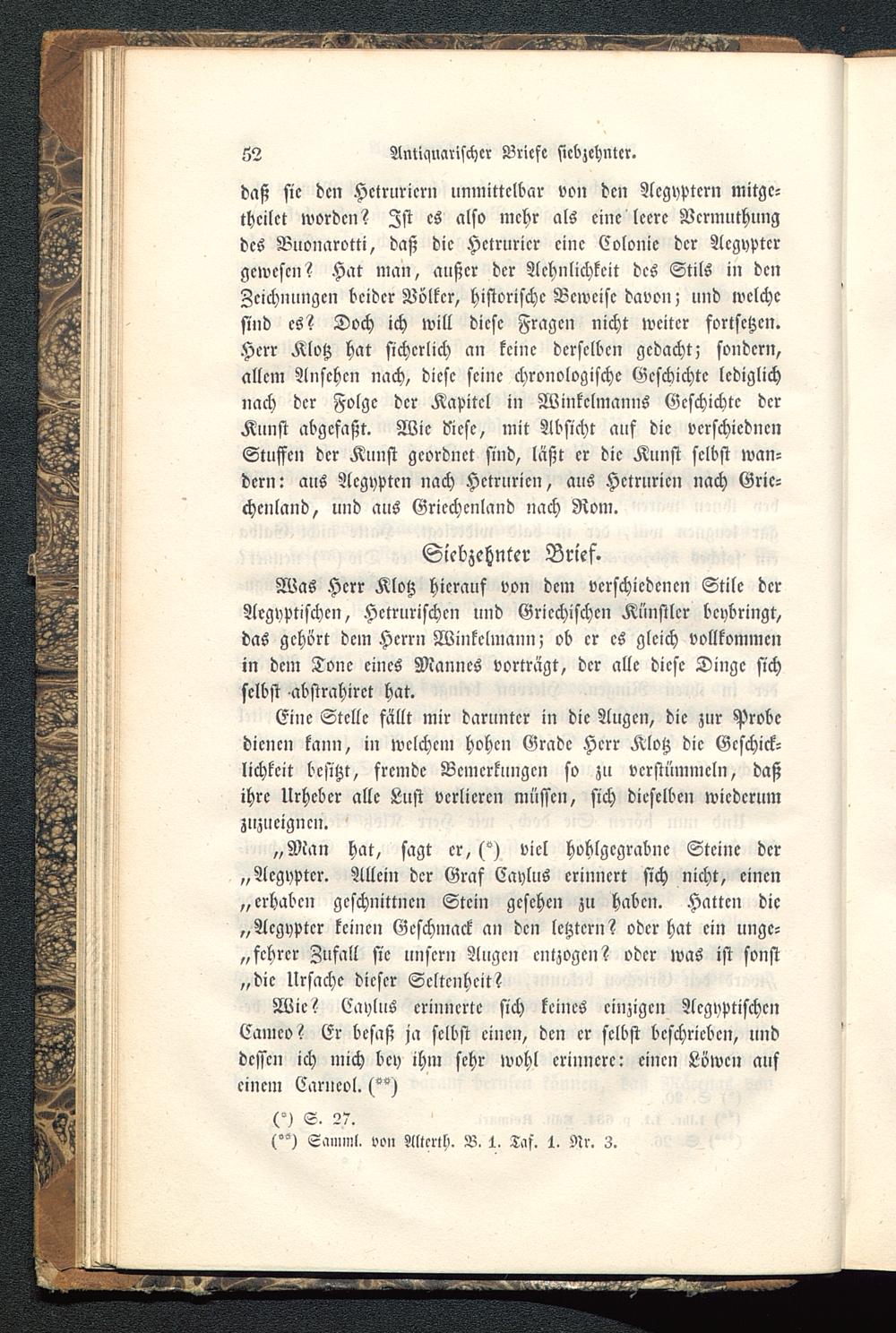 „Man hat, sagt er, (°) viel hohlgcgrabne Steine der„Acgyptcr. Allein der Graf Eaylus erinnert sich nicht, einen„erhaben gcschnittncn Stein gesehen zu haben. Hatten die„Acgyptcr keinen Geschmack an den letztem? oder hat ein ungc-„fchrer Zufall sie unsern Augen entzogen? oder was ist sonst„die Ursache dieser Seltenheit?