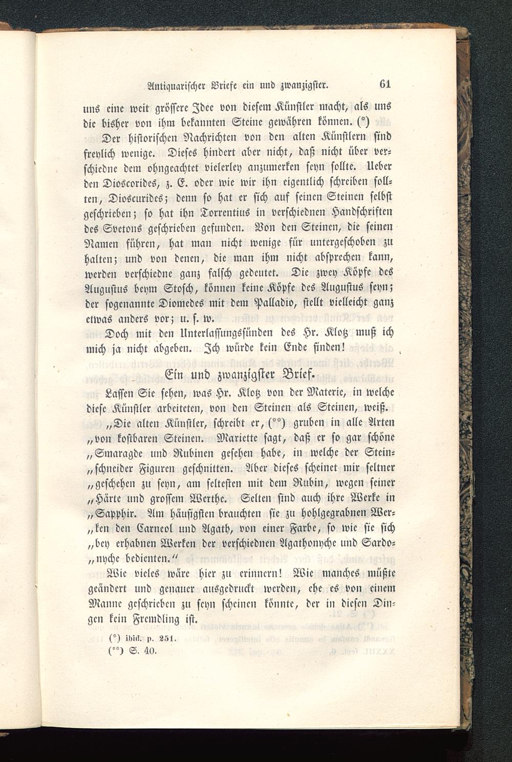 Antiquarischer Briefe ein und zwanzigster.
