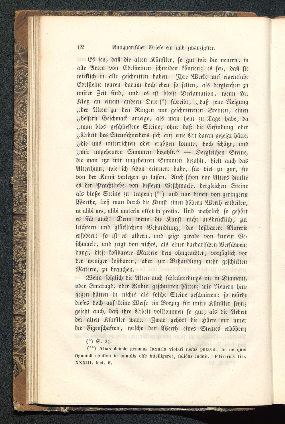 Wenn folglich die Alten auch schlechterdings nie in Diamant,oder Smaragd, oder Rubin geschnitten hätten; wir Neuern hin-gegen hätten in nichts als solche Steine geschnitten: so würdedieses doch auf keine Weise cin Vorzug für unsre Künstler seyn;gesetzt auch, daß ihre Arbeit vollkommen so gut, als die Arbeitder alten Künstler wäre. Zwar gehört die Härte mit unterdie Eigenschaften, welche den Werth eines Steines erhöhen;